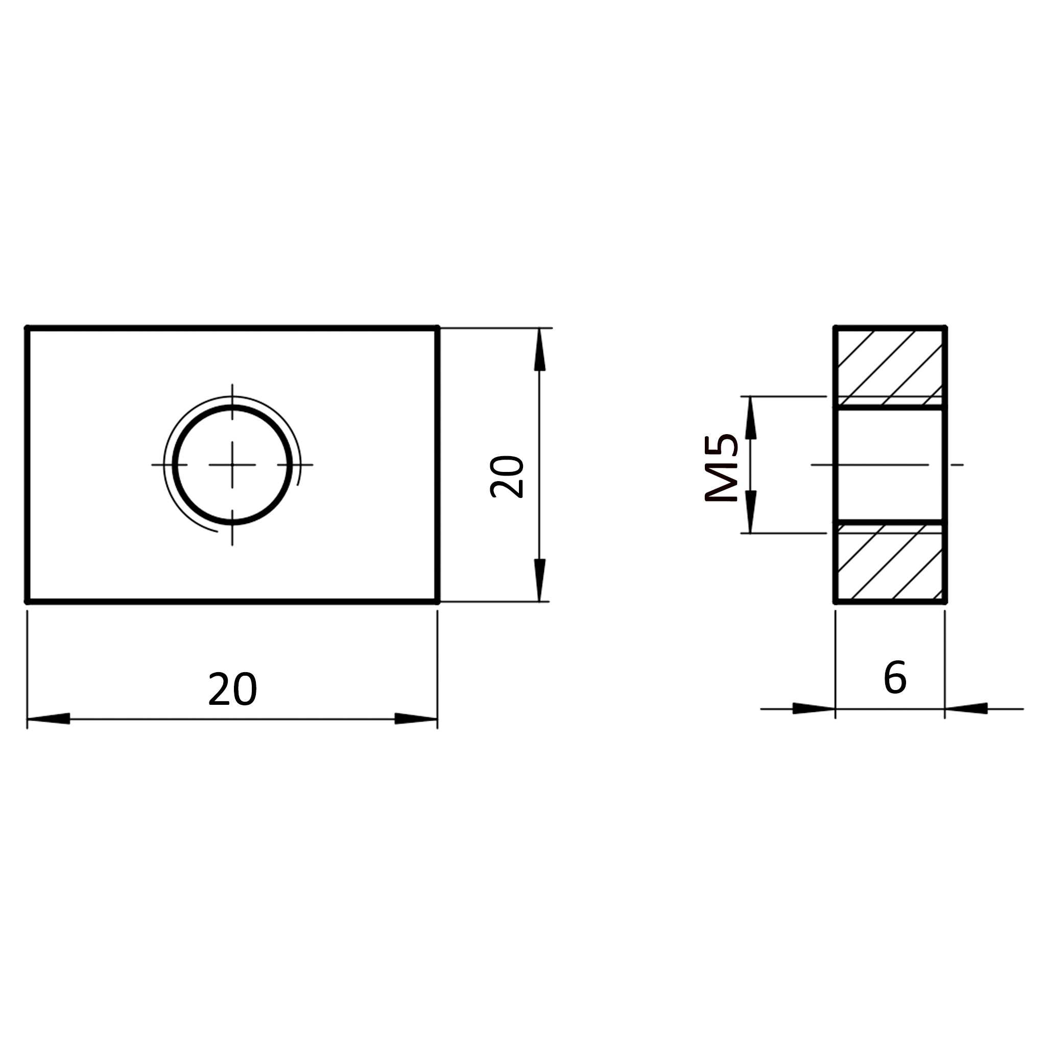 Gewindeplatte M5, 20x20x6, Stahl, verzinkt