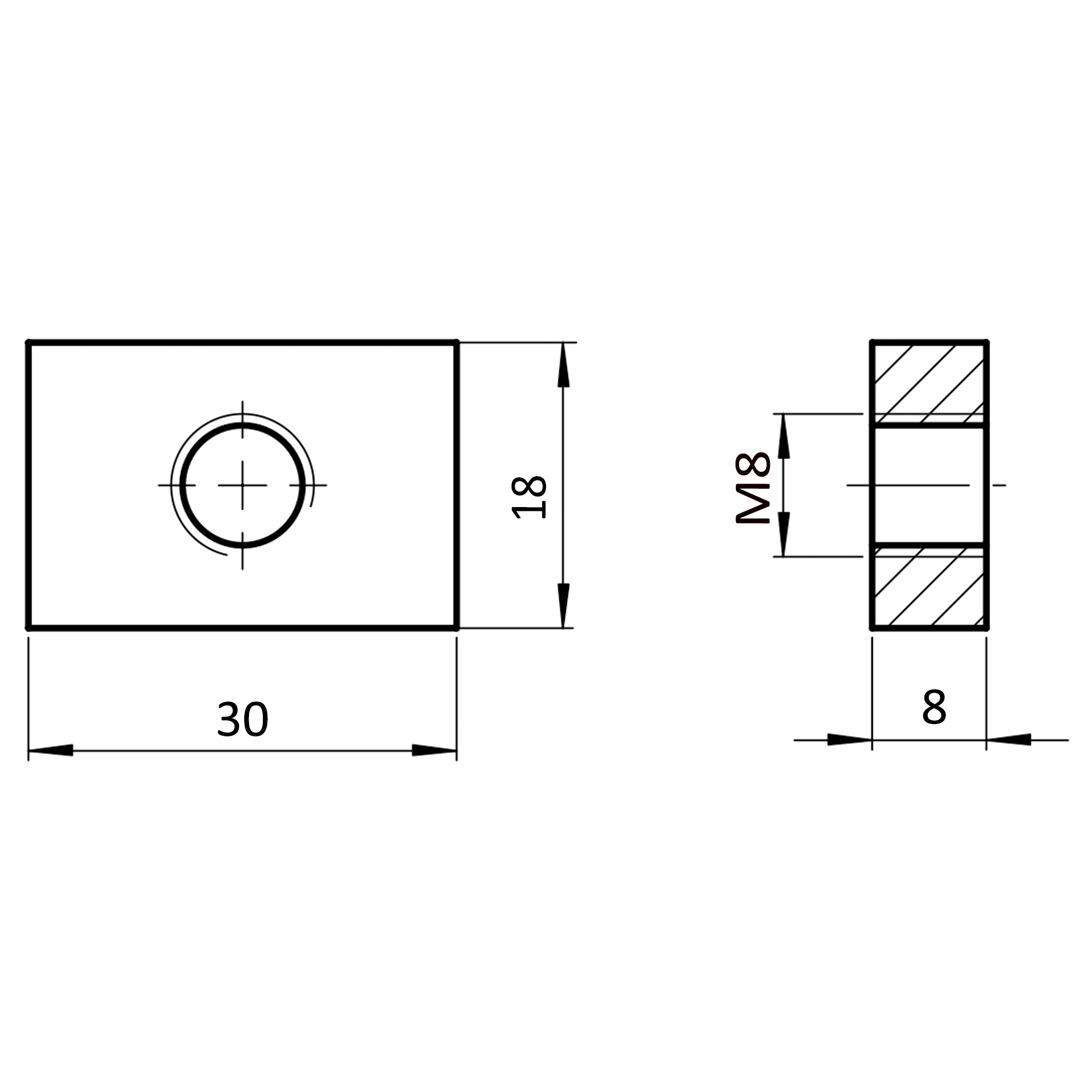 Gewindeplatte M8, 30x18x8, Stahl, verzinkt