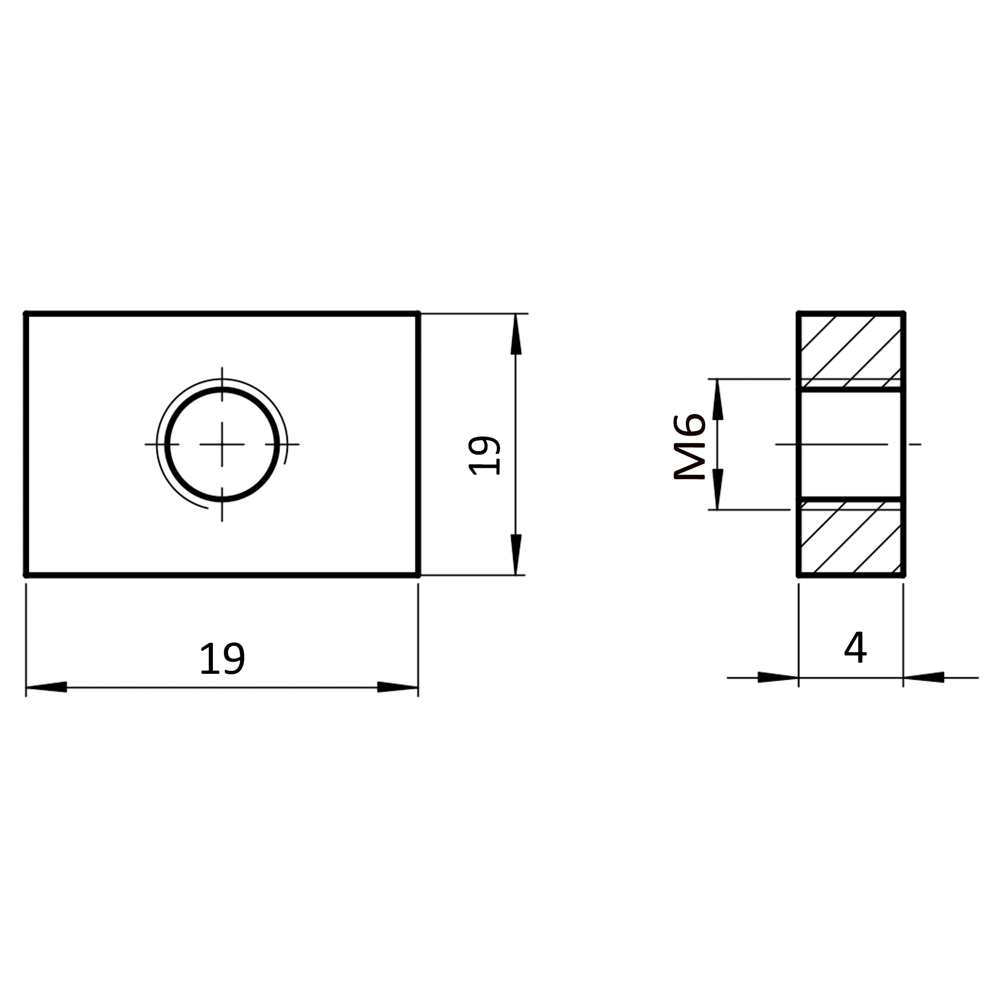 Gewindeplatte M6, 19x19x4, Stahl, verzinkt
