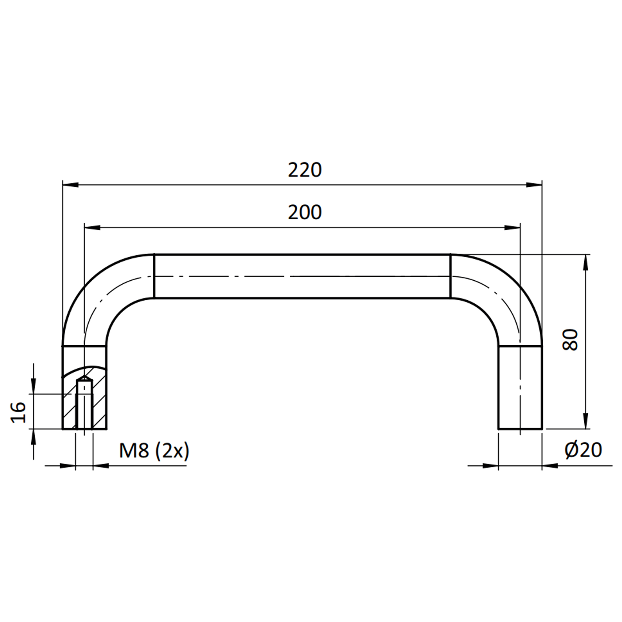 Griff, Handgriff, 200, Aluminium, pulverbeschichtet, schwarz