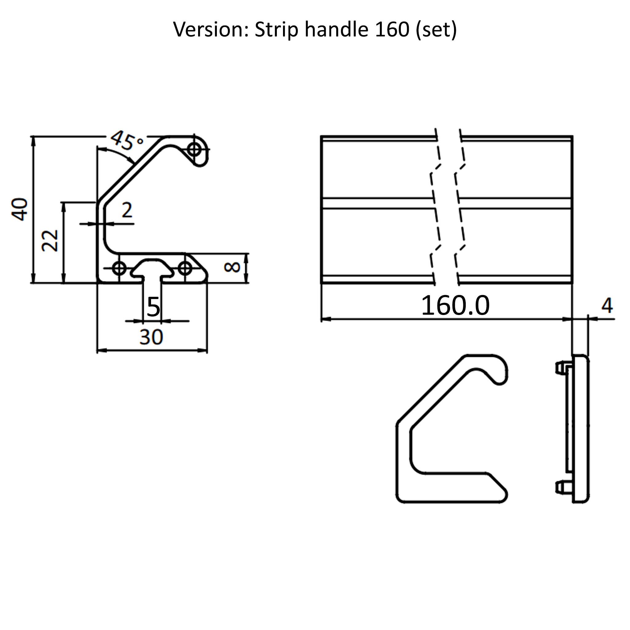 Griffleiste, 168x30x40, Aluminium, eloxiert, alufarbig
