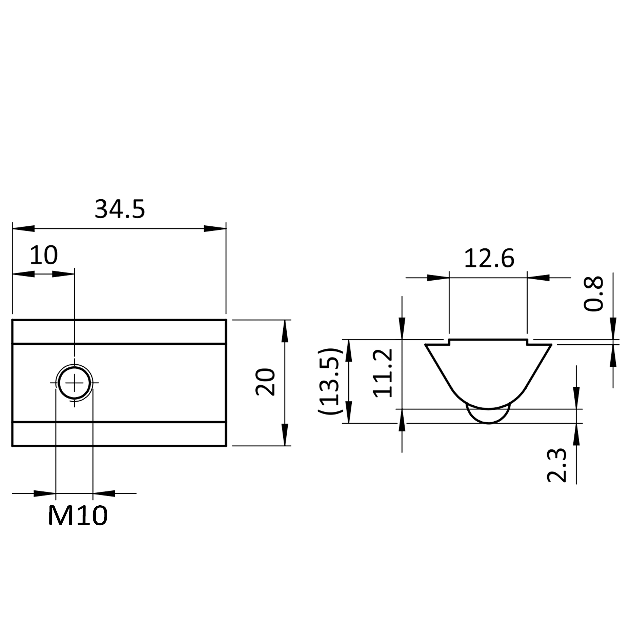 Nutenstein M10, Nut 12, Typ I, mit Steg, Stahl, verzinkt