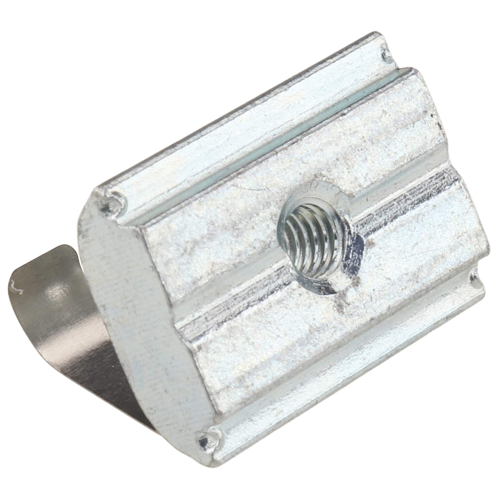 Der Nutenstein ist für die Verwendung mit einer Nutbreite von 10 mm konzipiert und mit einem M4-Gewinde ausgestattet. Der Typ B zeichnet sich durch einen zusätzlichen Steg und ein Federblech aus, die eine einfache Positionierung und eine sichere Befestigung gewährleisten. Das Federblech sorgt für eine präzise Fixierung innerhalb der Nut und verhindert ein ungewolltes Verrutschen des Nutensteins während der Montage. Durch die Verzinkung des Stahls wird der Nutenstein besonders widerstandsfähig gegen äußere Einflüsse, was ihn ideal für den Einsatz in anspruchsvollen industriellen Anwendungen macht.Vorteile
