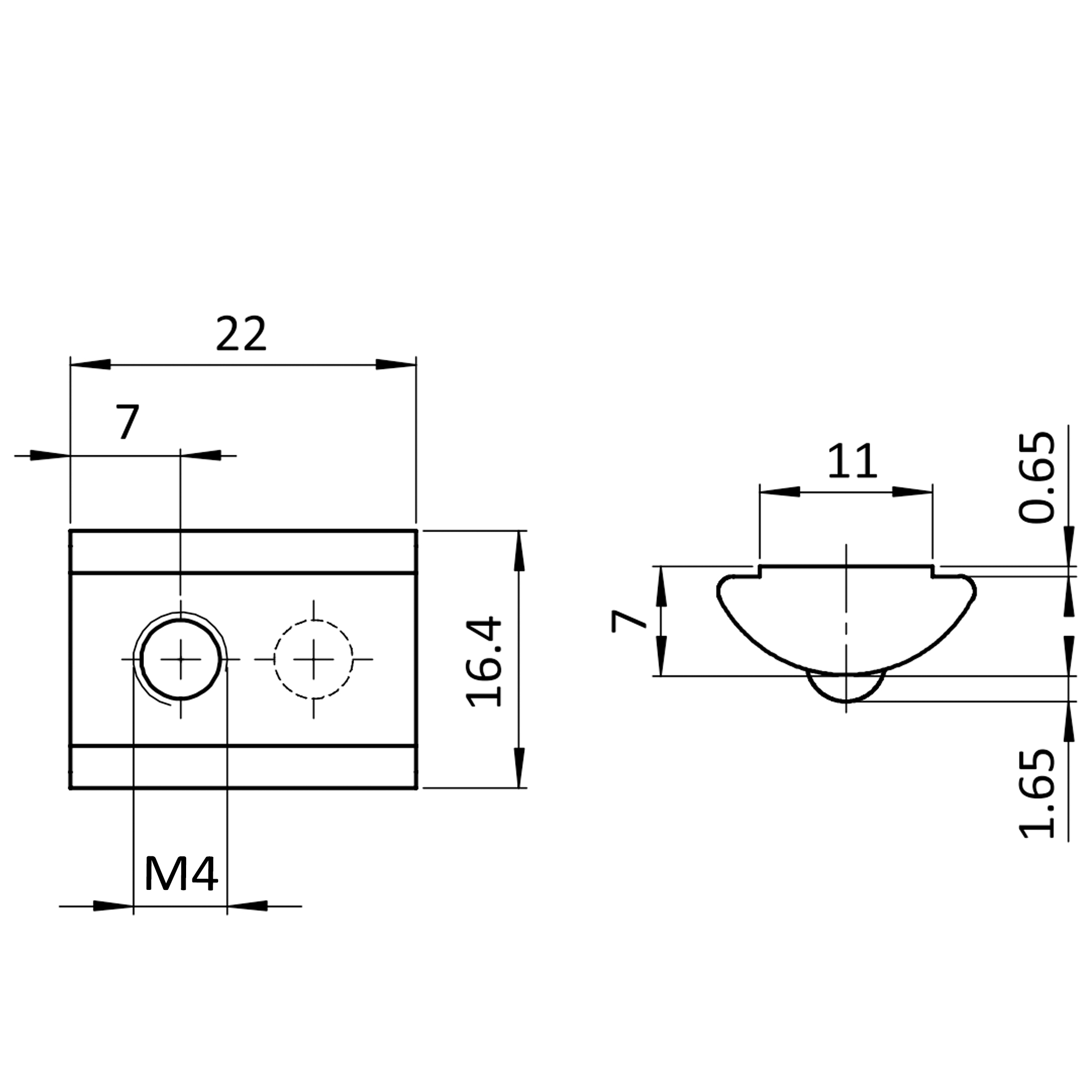 Nutenstein M4, Nut 11, mit Steg, Stahl, verzinkt