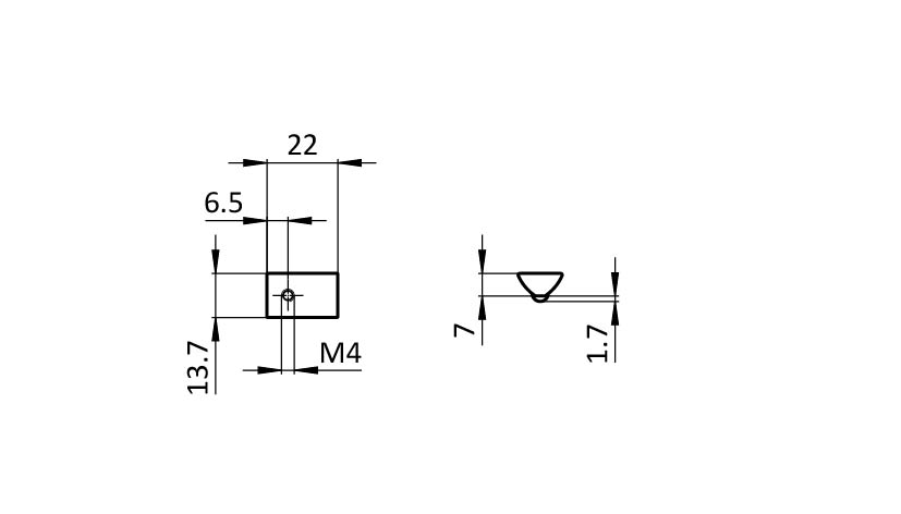 Nutenstein M4, Nut 8, Typ I, Edelstahl, blank