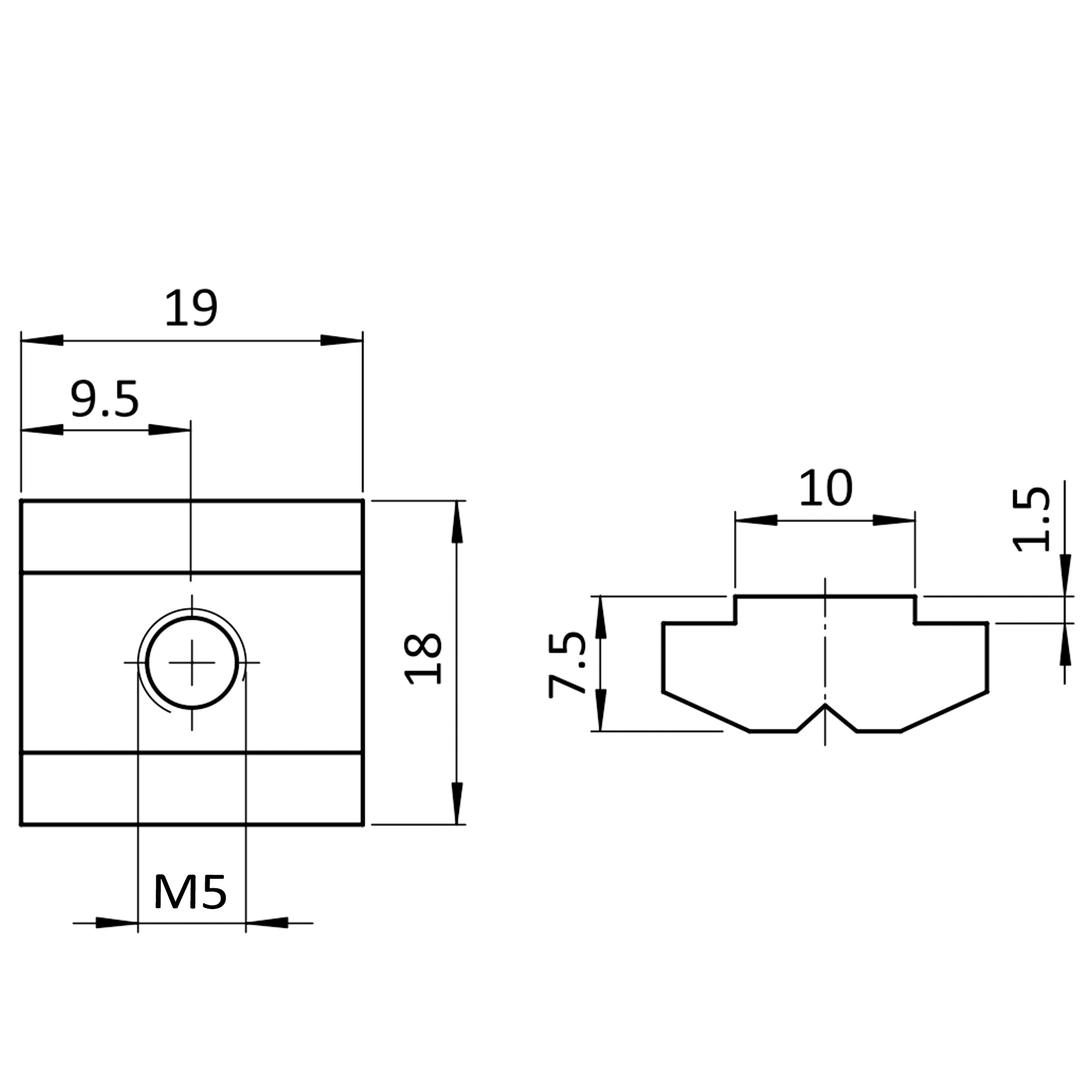 Nutenstein M5, Nut 10, mit Steg, Stahl, verzinkt