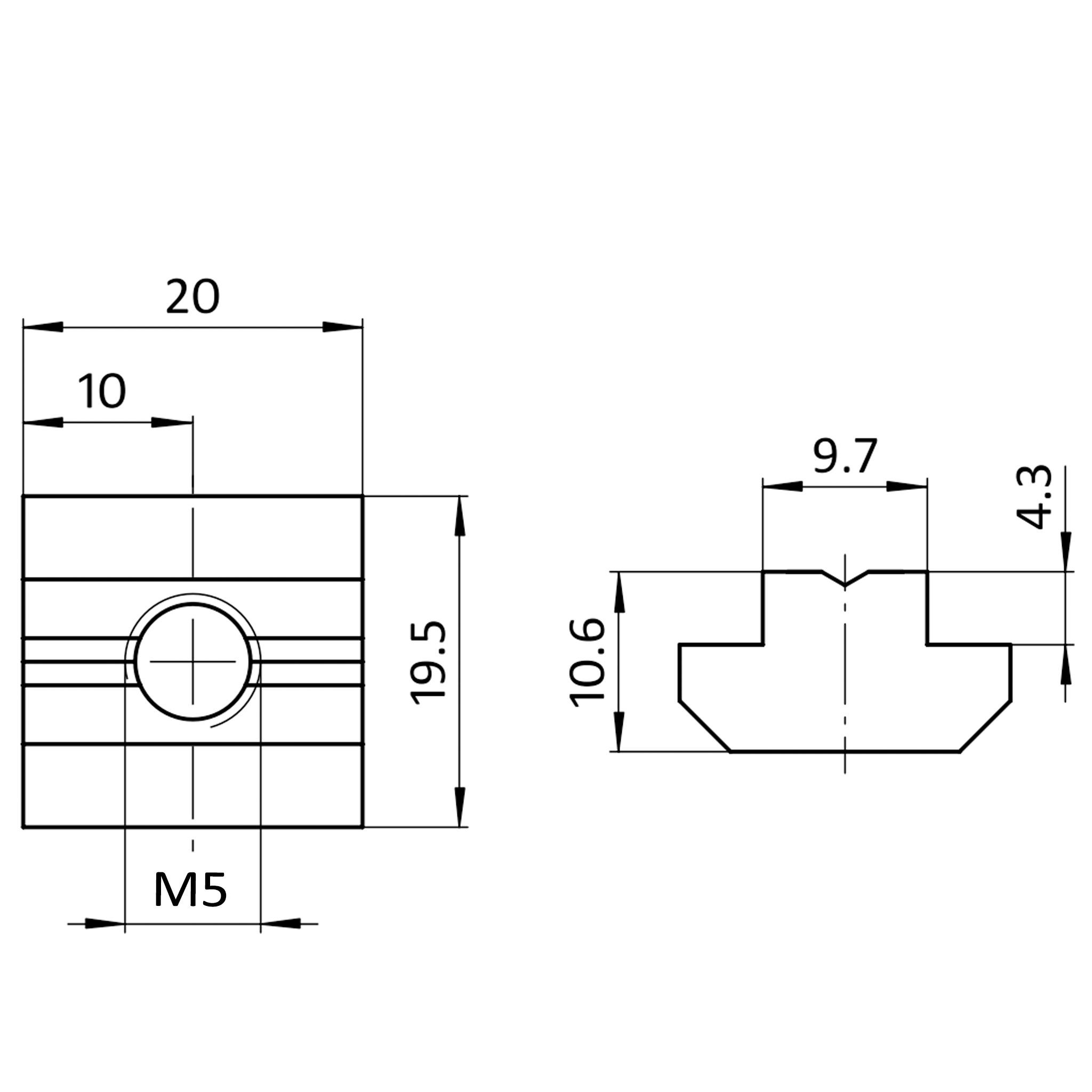 Nutenstein M5, Nut 10, mit Steg: Hochwertiges Verbindungselement