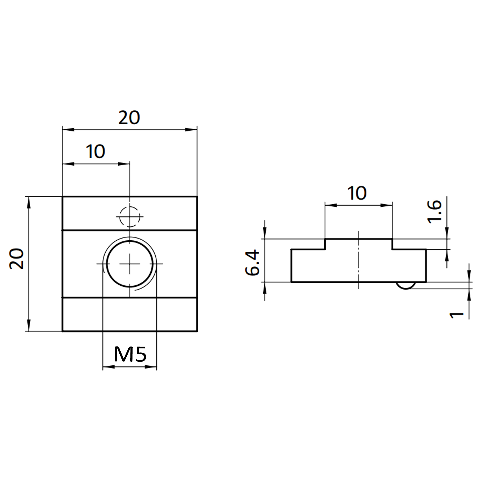 Nutenstein M5, Nut 10, mit Steg: Hochwertiger Stahl für präzise Anwendungen