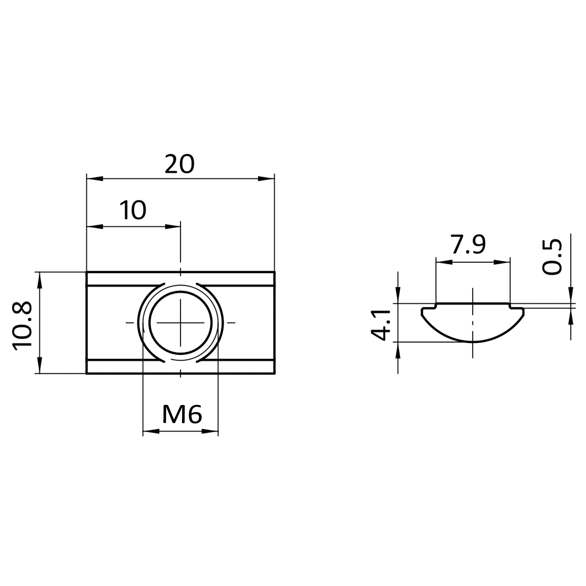 Nutenstein M6, Nut 8, mit Steg, Stahl, verzinkt
