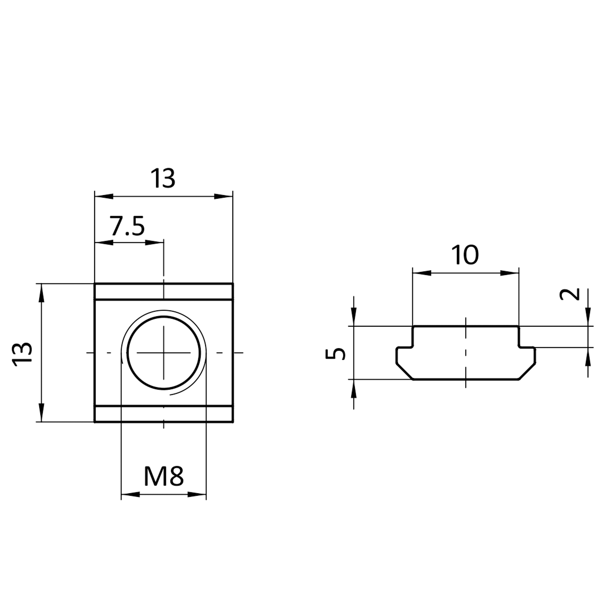 Nutenstein M8, Nut 10, mit Steg, Stahl, verzinkt