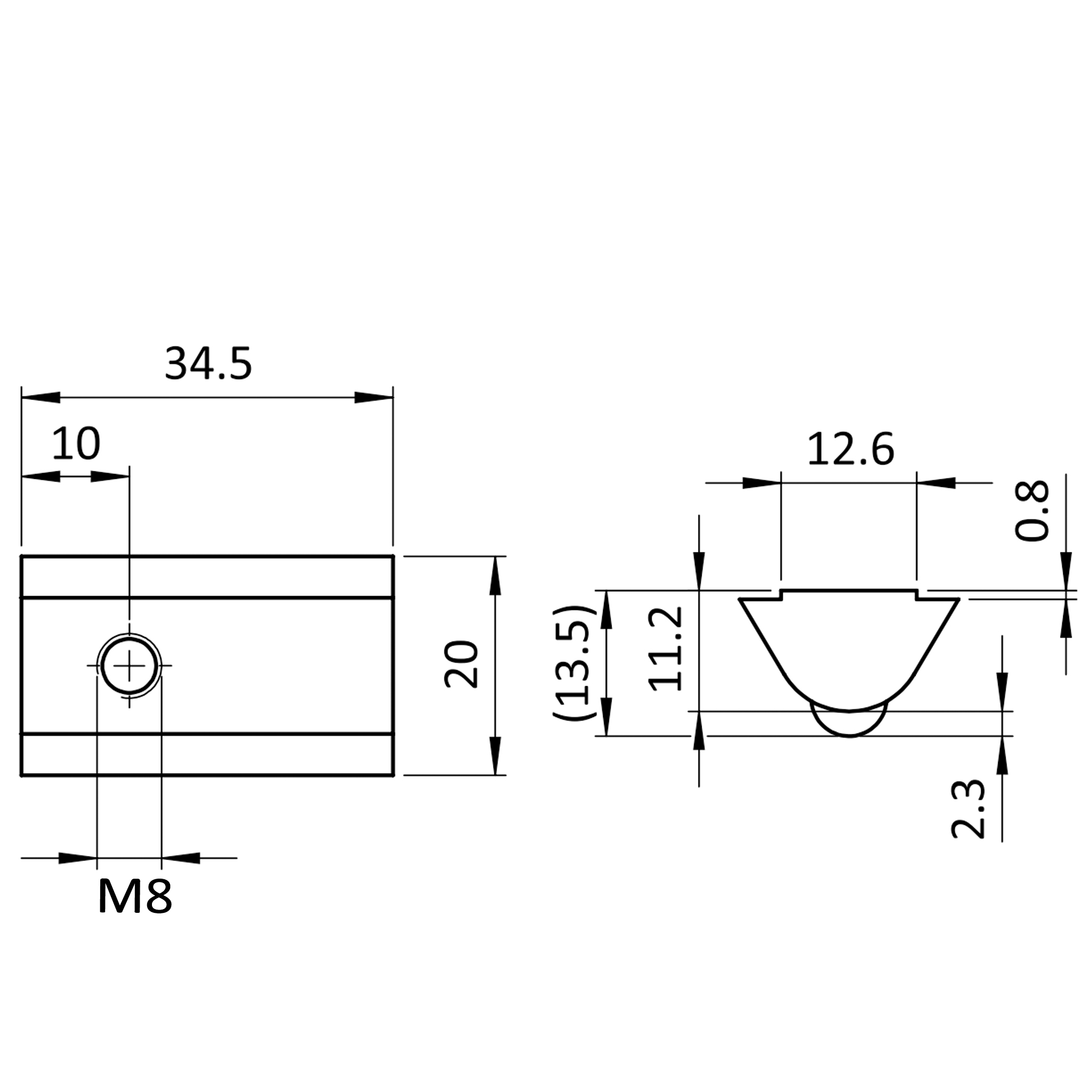 Nutenstein M8, Nut 12, Typ I, mit Steg, Stahl, verzinkt