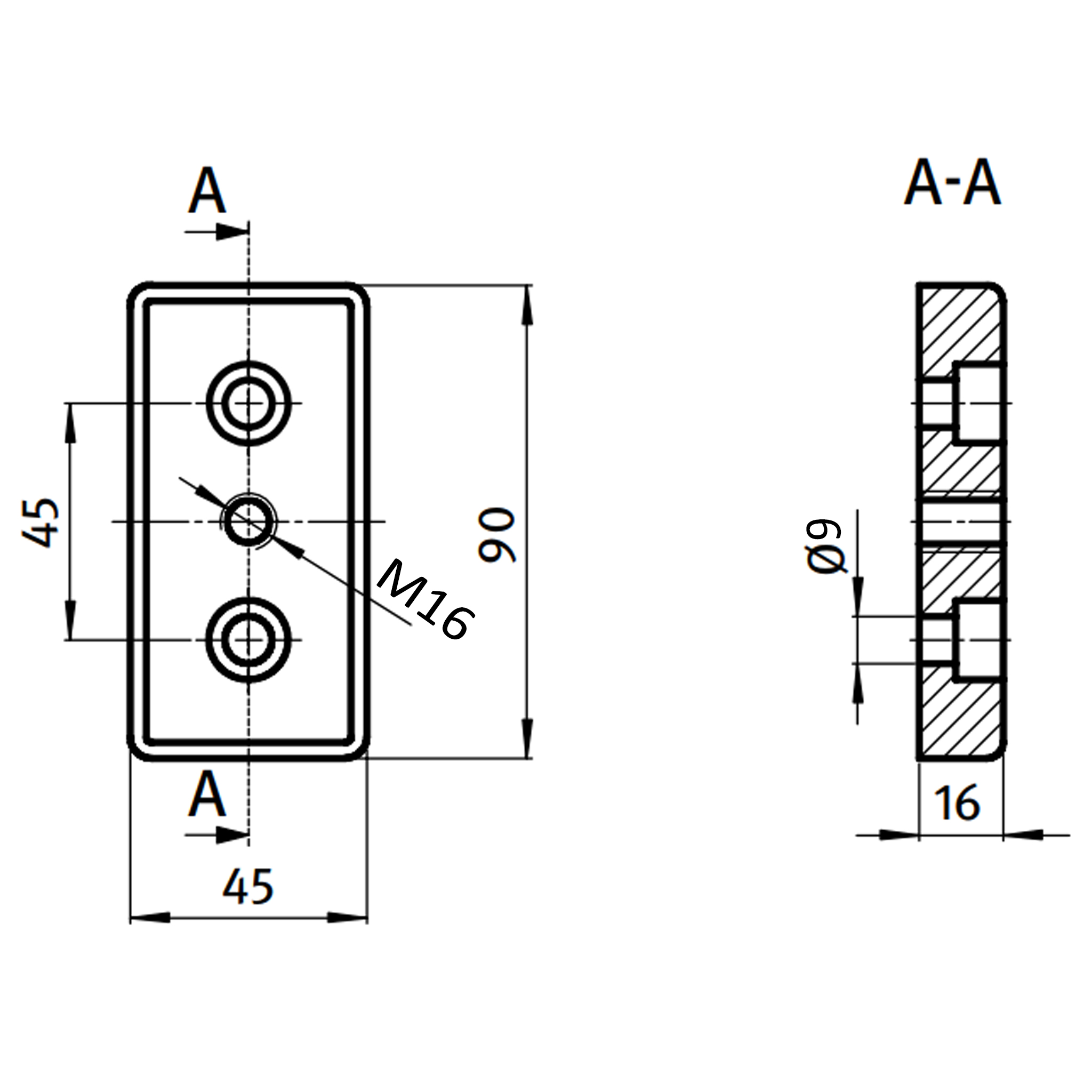Platte, Transport- und Fußplatte M16, 45x90x16, Zink-Druckguss, blank von 3d24