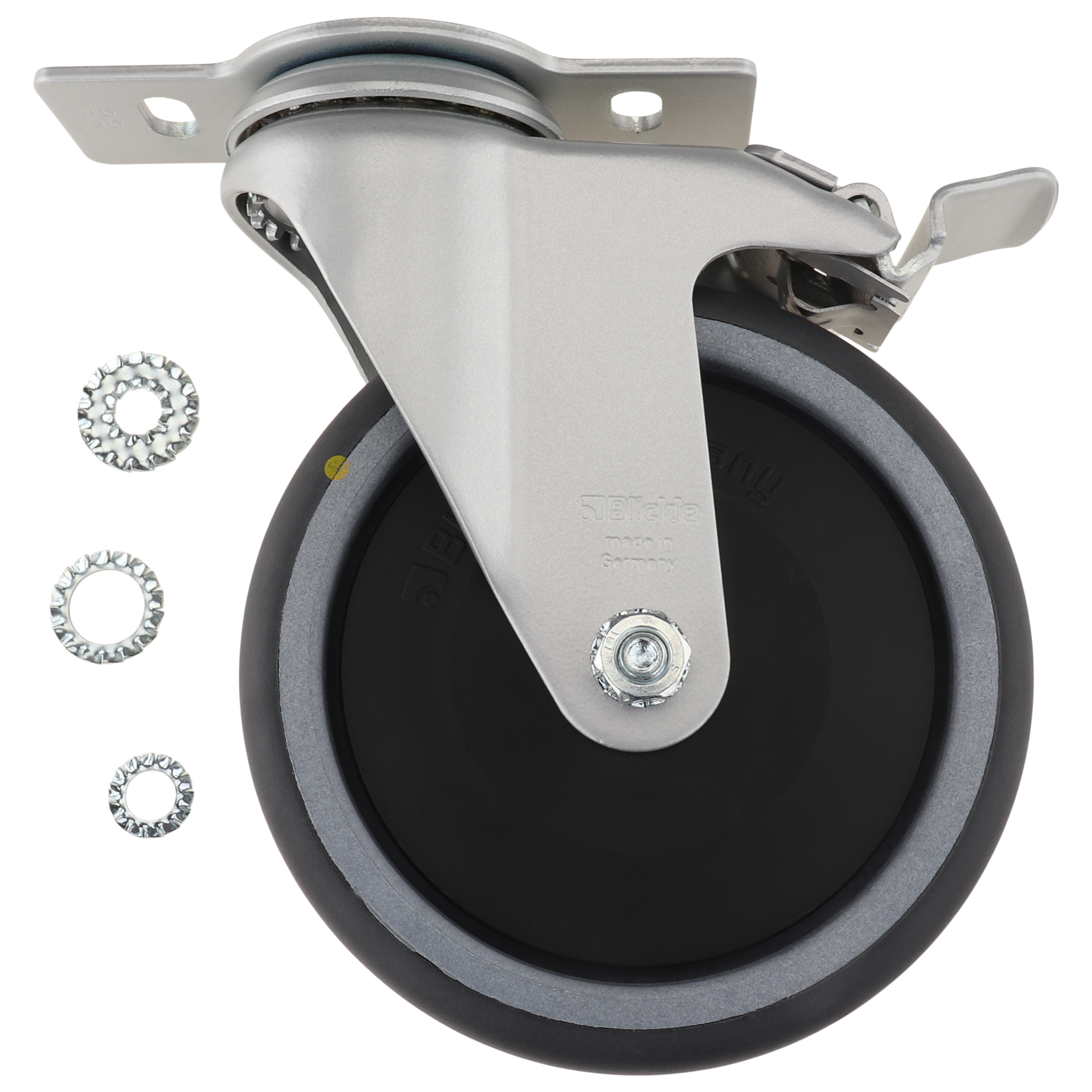 Zusammenfassend bietet die Rolle, Lenkrolle, D125, Radkörper PA, schwarz von 3d24 eine komfortable Lösung für verschiedenste industrielle Anwendungen. Ihre hervorragende Tragfähigkeit, erstklassige Materialqualität und vielseitige Einsatzmöglichkeiten machen sie zu einer zuverlässigen Wahl für Unternehmen, die Wert auf Effizienz und Langlebigkeit legen. Mit dieser Lenkrolle investieren Sie in ein Produkt, das den hohen Anforderungen des industriellen Alltags problemlos standhält.| Ausführung: | mit Doppelfeststeller und Anschraubplatte |