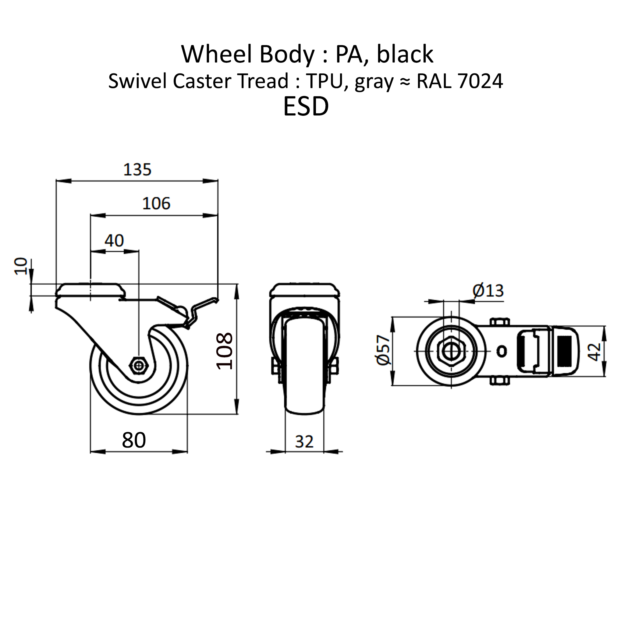 Rolle, Lenkrolle, D80, Radkörper PA, schwarz