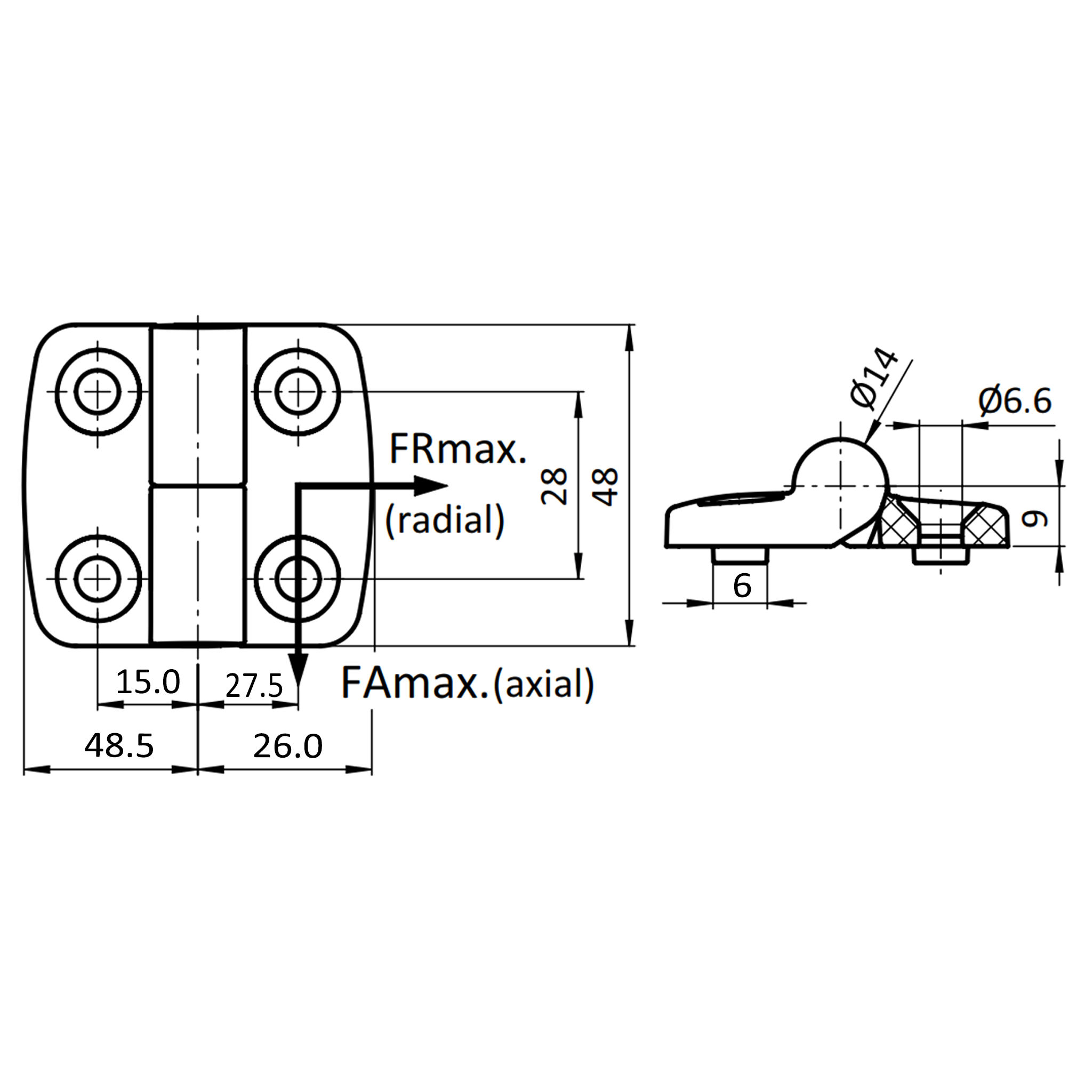 Scharnier, Kunststoff-Kombischarnier, 75x48x15, Kunststoff PA glasfaserverstärkt, schwarz