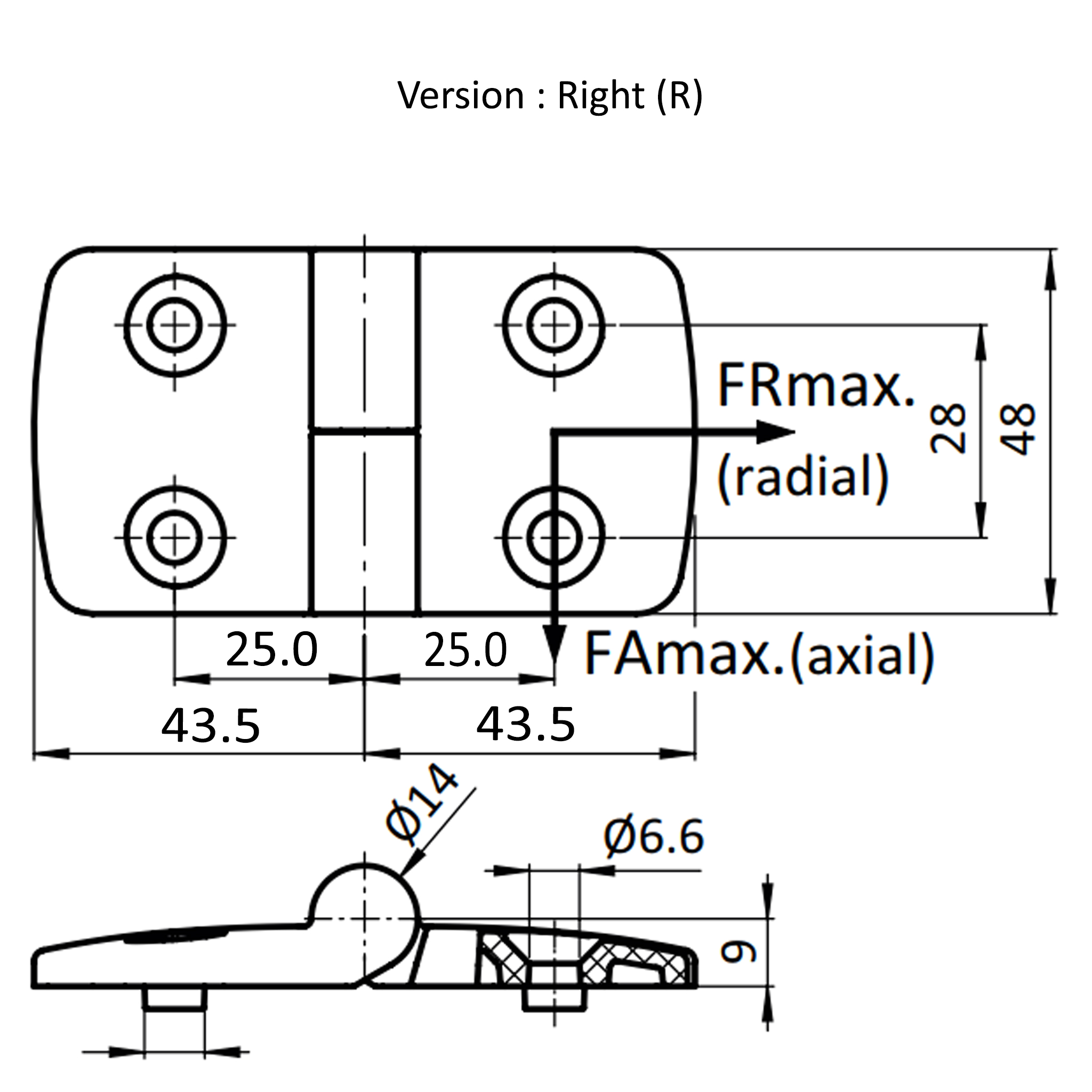 Scharnier, Kunststoff-Kombischarnier, 87x48x16, Kunststoff PA glasfaserverstärkt, schwarz