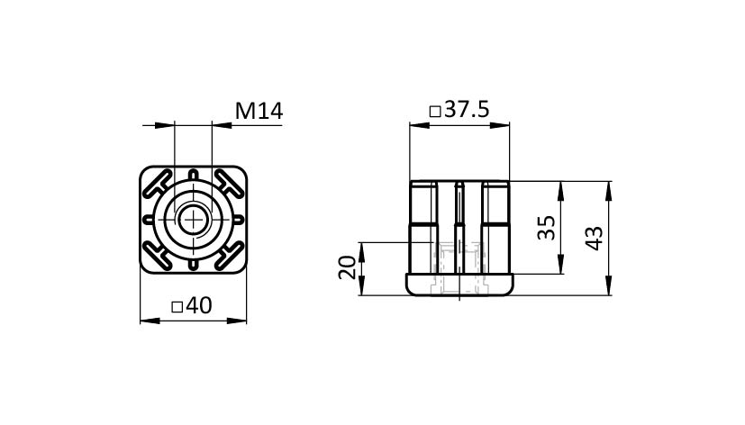 Stopfen, Gewindestopfen M14, 40x40x1.5, Kunststoff PA glasfaserverstärkt, schwarz