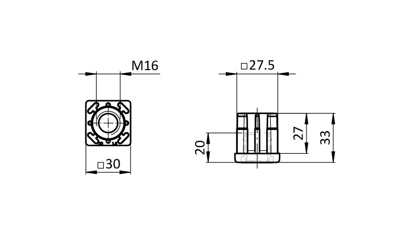 Stopfen, Gewindestopfen M16, 30x30x1.5, Kunststoff PA glasfaserverstärkt, schwarz