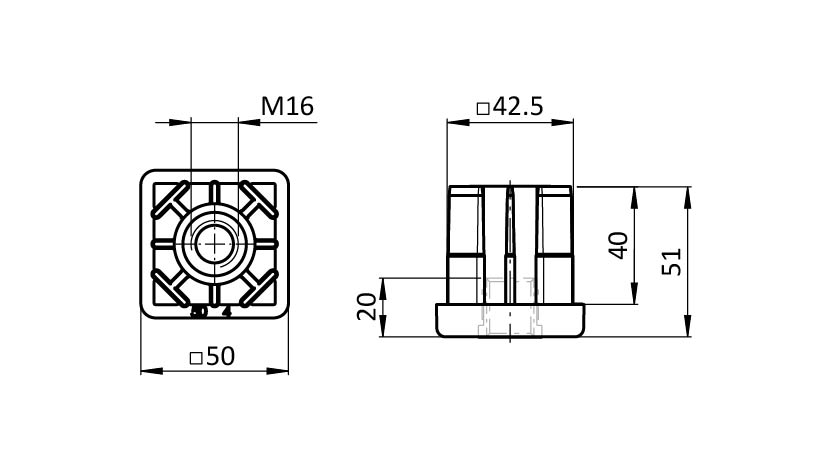 Stopfen, Gewindestopfen M16, 50x50x4.0, Kunststoff PA glasfaserverstärkt, schwarz
