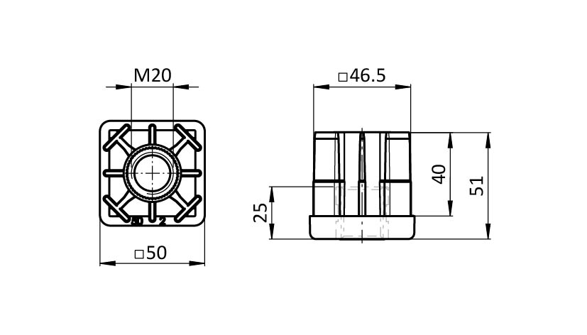 Stopfen, Gewindestopfen M20, 50x50x2.0, Kunststoff PA glasfaserverstärkt, schwarz