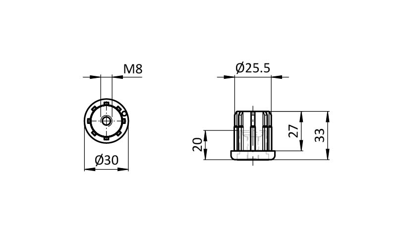 Stopfen, Gewindestopfen M8, D30x2.5, Kunststoff PA glasfaserverstärkt, schwarz