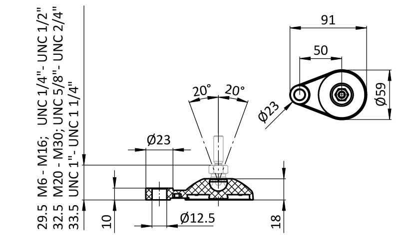 | Technische Eigenschaft: | Schwenkbereich 20° |