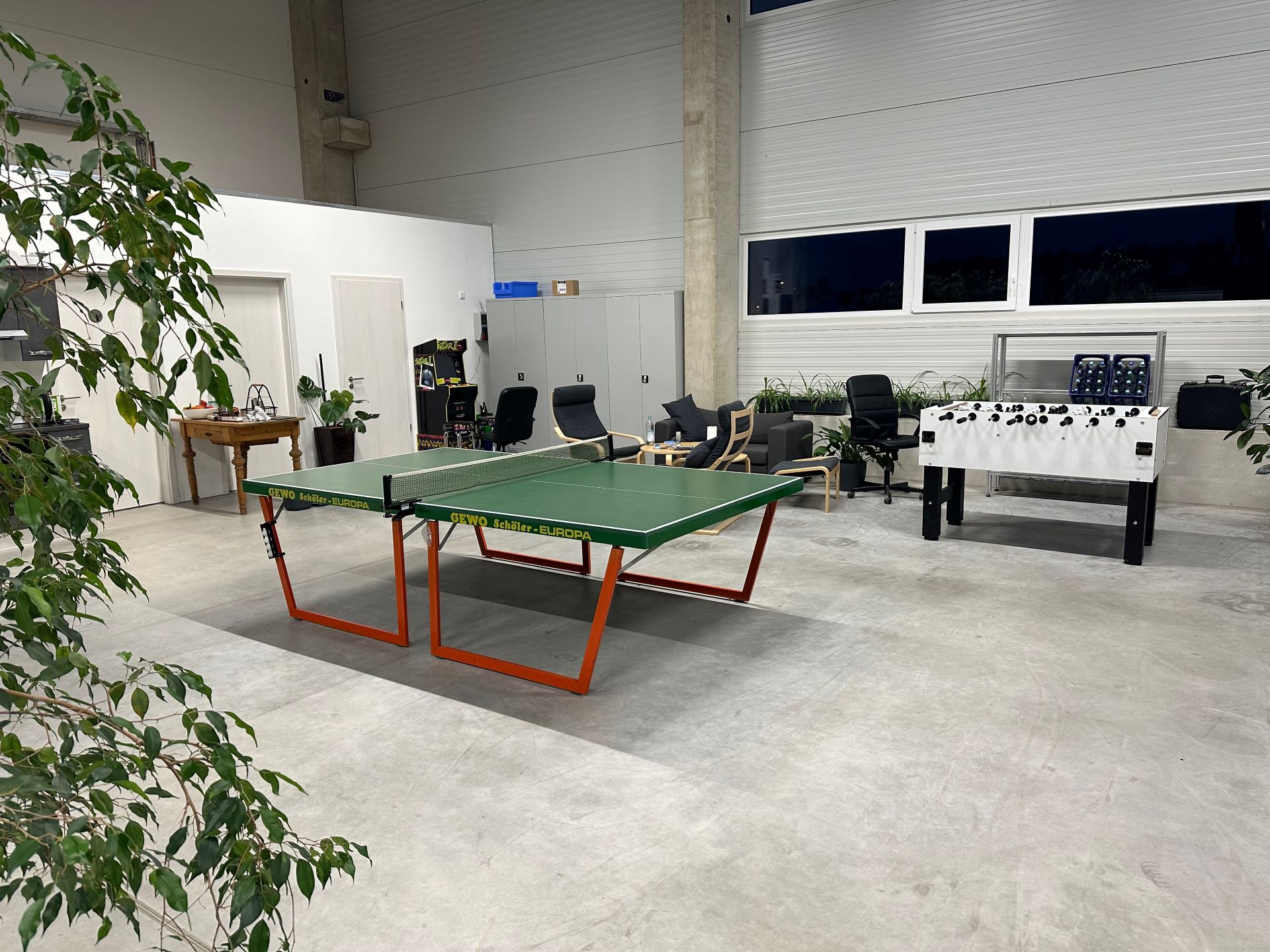 Bei uns steht der Mensch im Mittelpunkt. Wir arbeiten gerne, aber Spaß muss sein. So haben wir unseren eigenen Kicker, eine Tischtennisplatte, Arcade Spiele usw., die die Mitarbeiter jederzeit nutzen können. Eine eigene Terrasse in der Natur direkt an unserer Halle kann zum Arbeiten oder einfach nur für die Mittagspause genutzt werden.