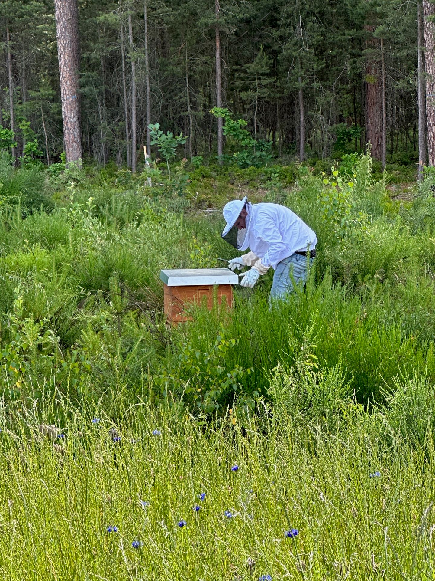 Hier kümmert sich gerade unser Mitarbeiter um die Bienen.