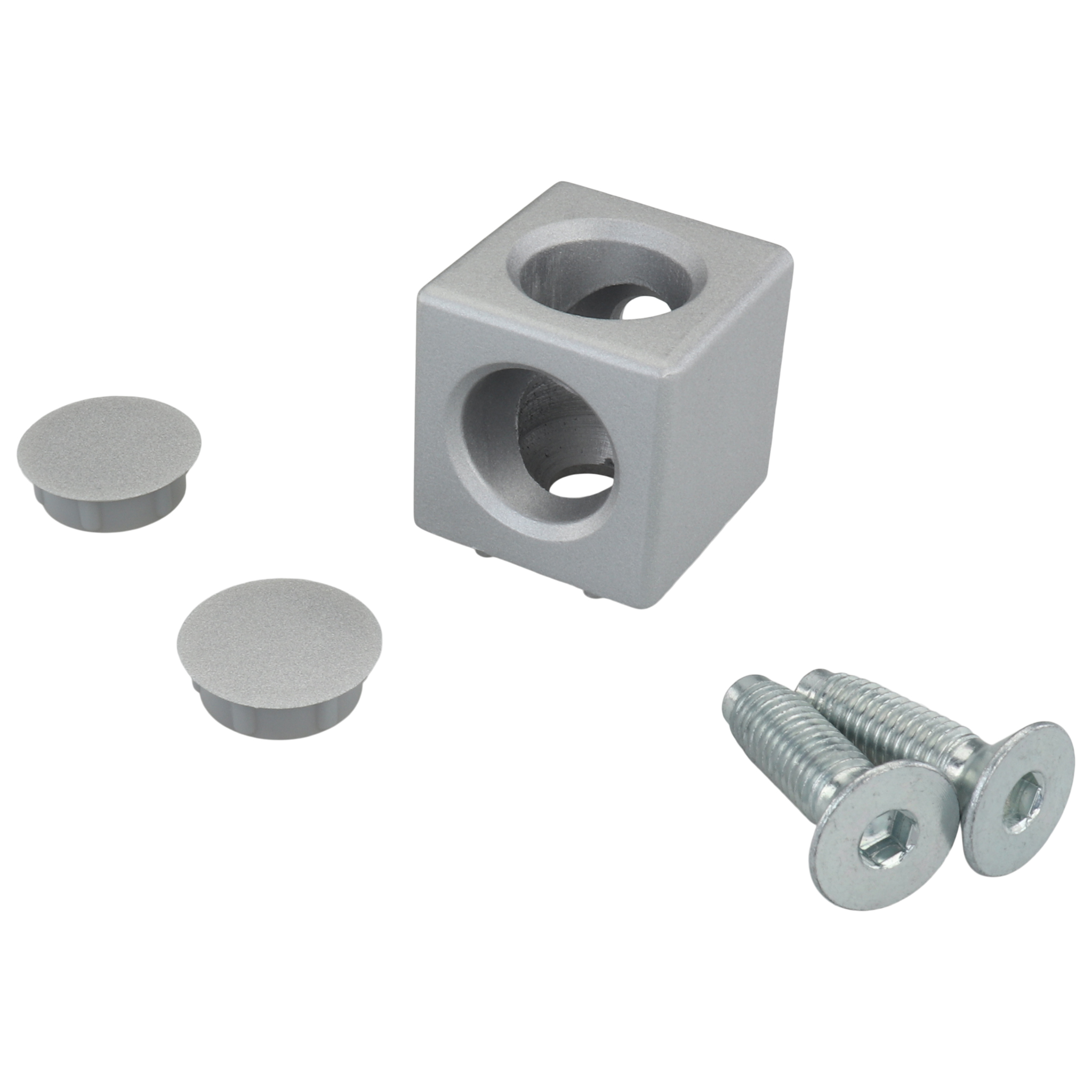 Verbinder, Würfelverbinder, 30x30x30, Aluminiumdruckguß, pulverbeschichtet, alufarbig