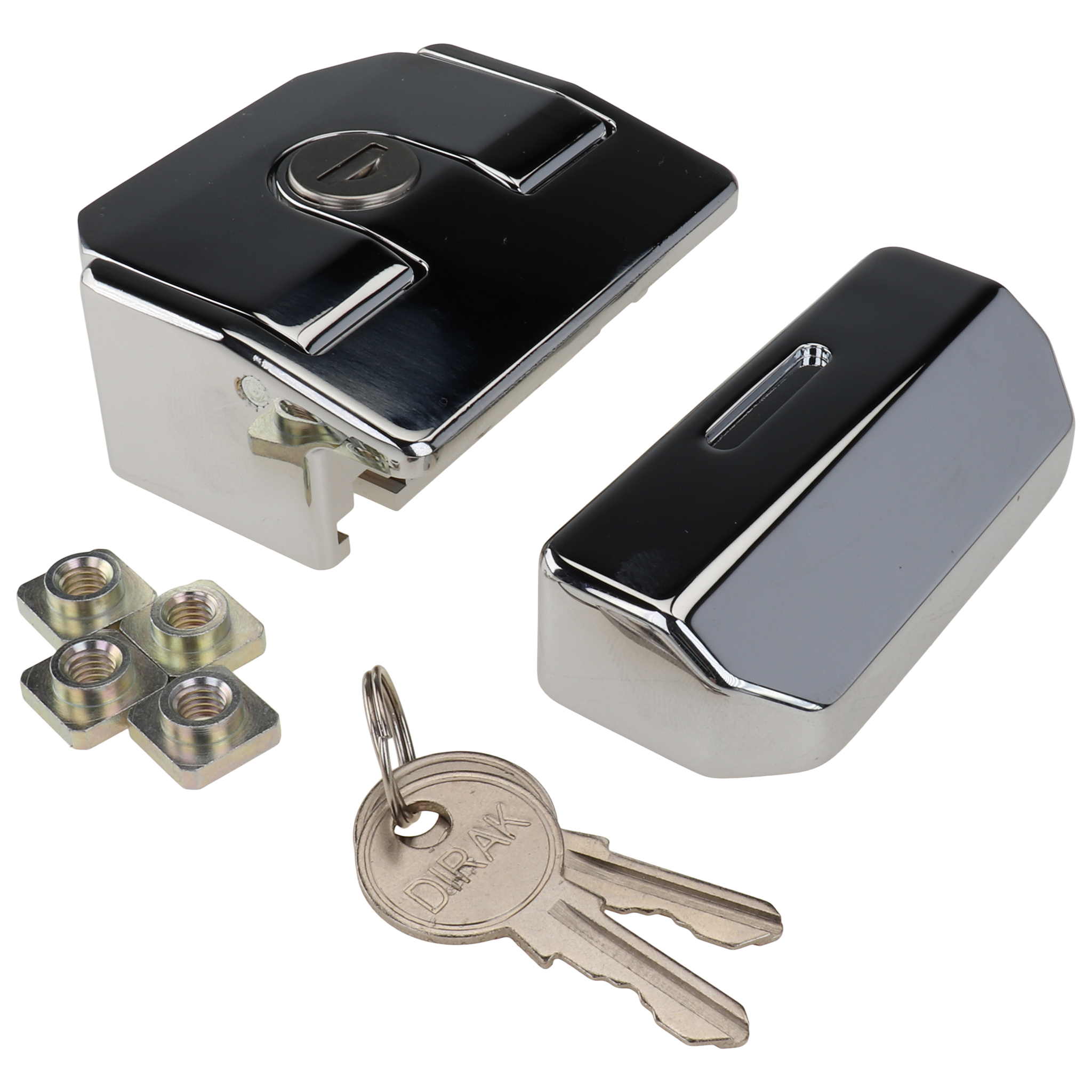 Verschluß, Fallenverschluss, 85x80x30, Zink-Druckguß, verchromt, chrom, Fallenverschluss, gleichschließend, Fallenschloss zum leichten und sicheren Verschließen von Türen und Klappen.