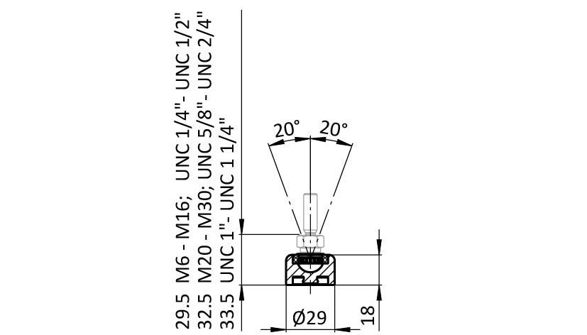 | Technical property: | Swiveling range 20° |