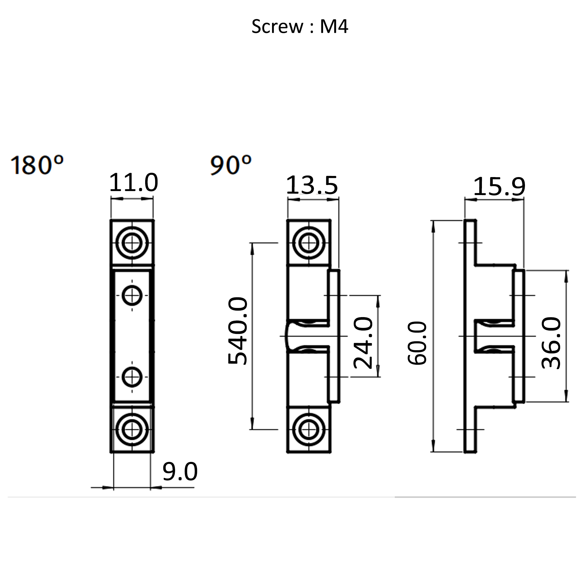 | Location - Mounting: | From the front, using countersunk screws M4 |