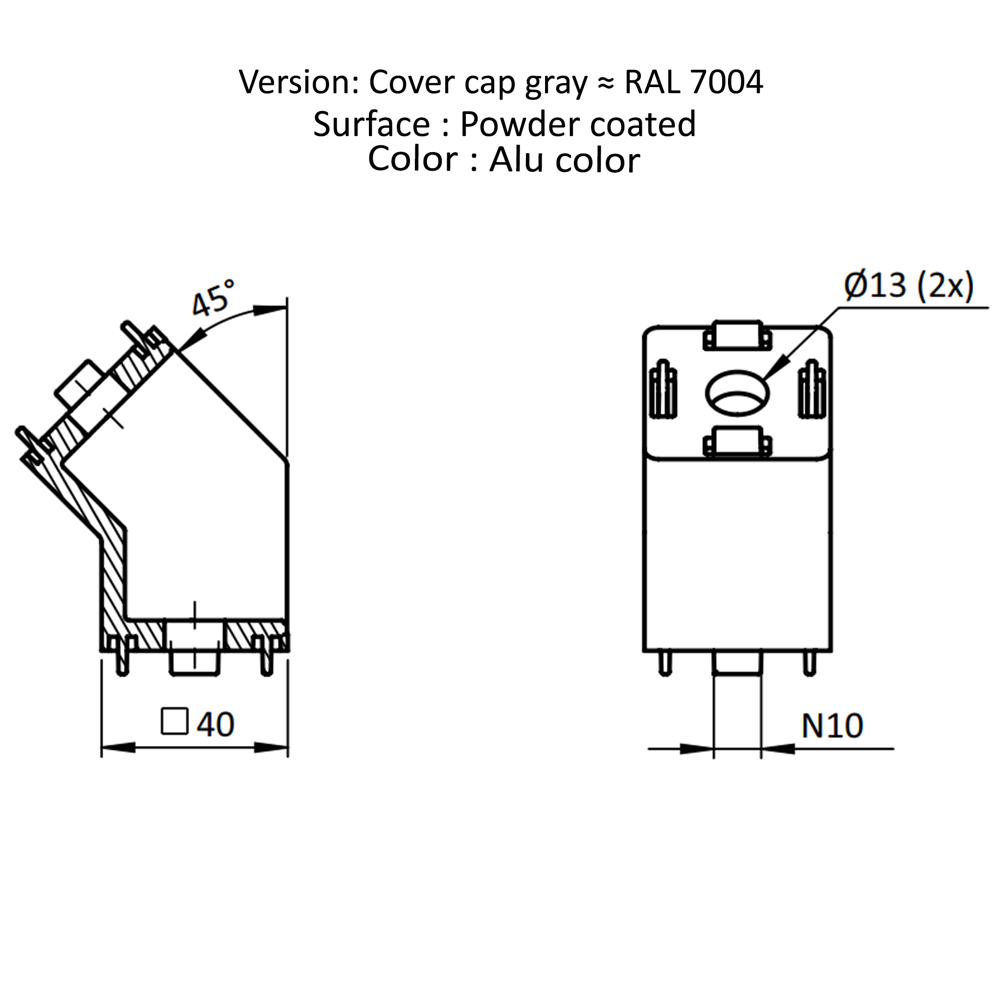 The connector is made of robust aluminum die-cast, which ensures exceptional strength and durability. With dimensions of 40x40x18 millimeters, it fits perfectly into a variety of constructions and offers optimal stability at an angle of 45 degrees. The surface is powder-coated, which not only provides an appealing aluminum-colored appearance but also improves corrosion protection. This detail ensures that the connector functions reliably even under demanding conditions.Advantages