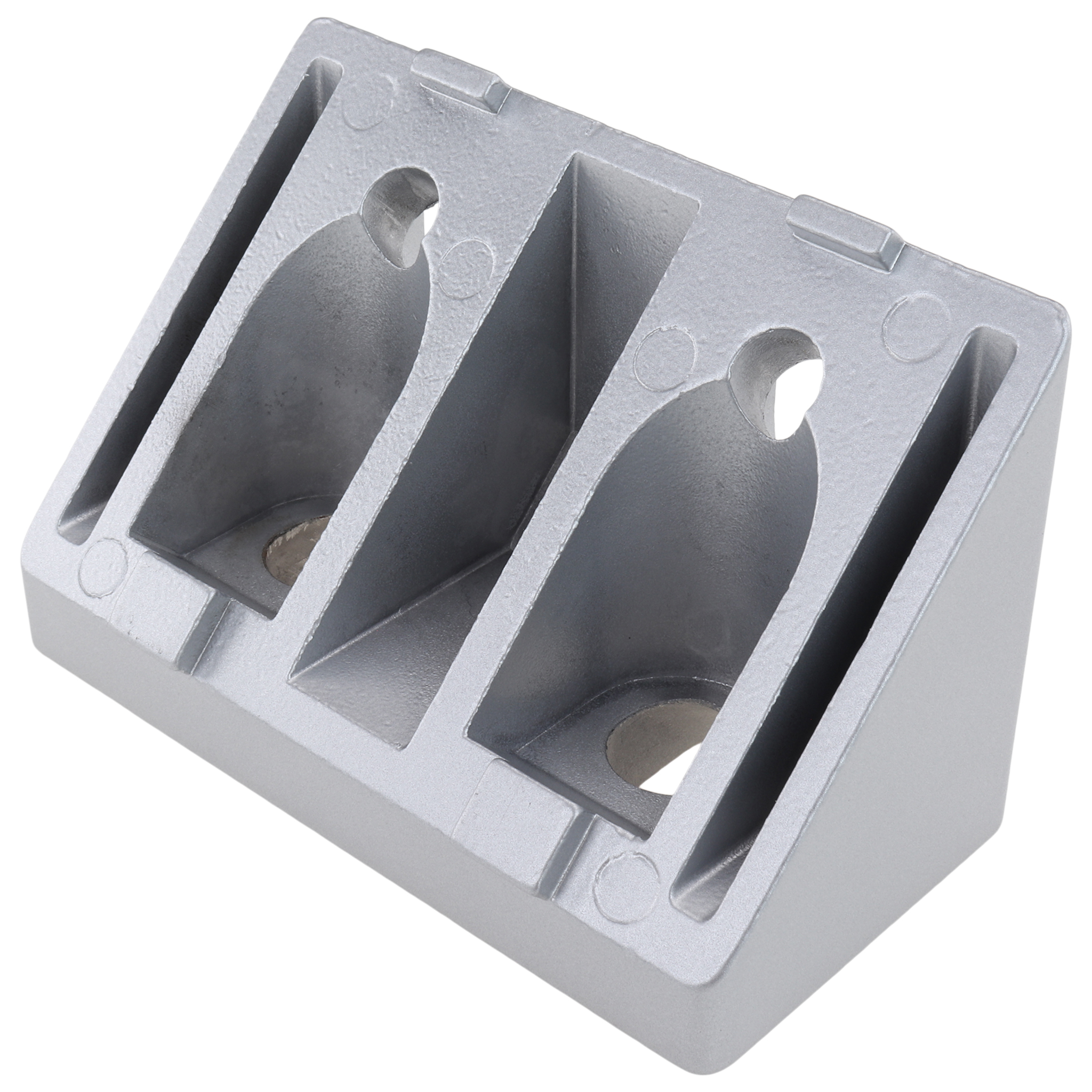 The connector, 45° angle connector, 90x45x45, aluminum die-cast, powder-coated, aluminum-colored, from 3d24 is a masterpiece of technical engineering. This product was specifically developed to meet the demanding requirements of modern construction projects. Equipped with a precise 45° angle construction, it offers excellent stability and strength for various applications. Its dimensions of 90x45x45 mm make it ideal for a variety of uses.Product Features