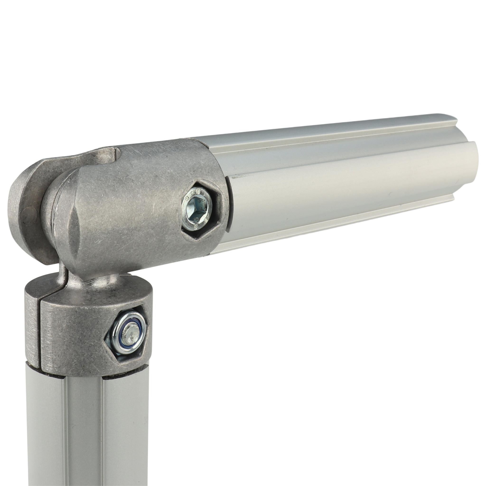 The internal ball joint connector is distinguished by its precise workmanship and the use of high-quality die-cast aluminum. The material is not only robust but also lightweight, making the connector particularly handy. The dimensions of 100x28x28 provide an ideal fit for various industrial applications. With its bare, aluminum-colored finish, the connector is resistant to external influences and retains its premium appearance even after prolonged use. The ball joint allows flexible application in different directions, increasing adaptability in complex structures.Advantages