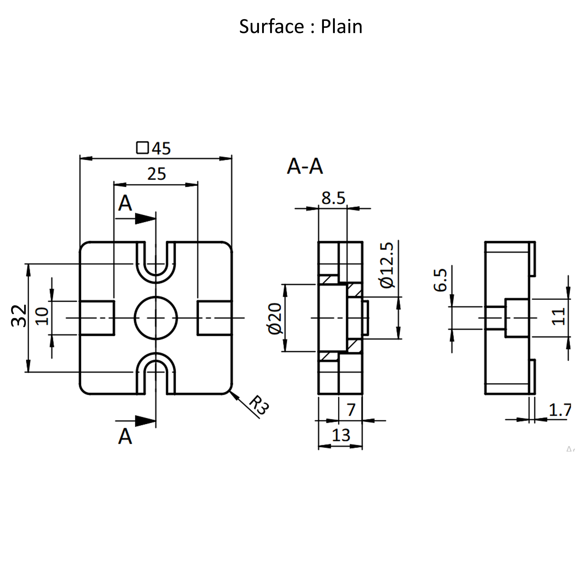 The plate connector has dimensions of 45x45x13 and is made from high-quality zinc die-cast. This choice of material gives the connector excellent stability and longevity. The surface is powder-coated and aluminum-colored, which not only ensures an appealing appearance but also increases protection against corrosion. The careful processing guarantees a precise fit that facilitates mounting and ensures optimal results. Each connector is designed to retain its shape and function even with frequent use.Advantages