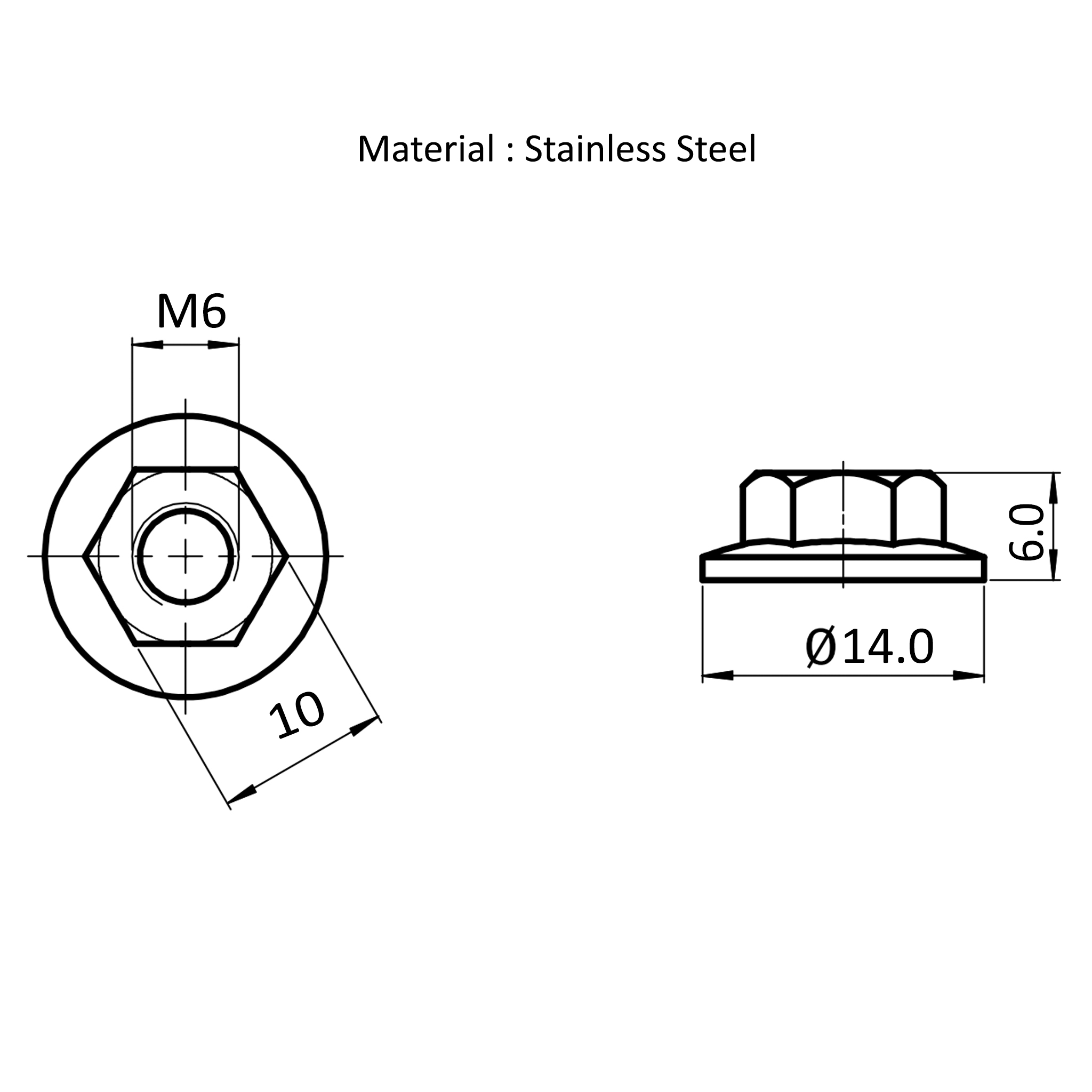 Flange Nut M6 D14x6 in Timeless Design Made of Stainless Steel