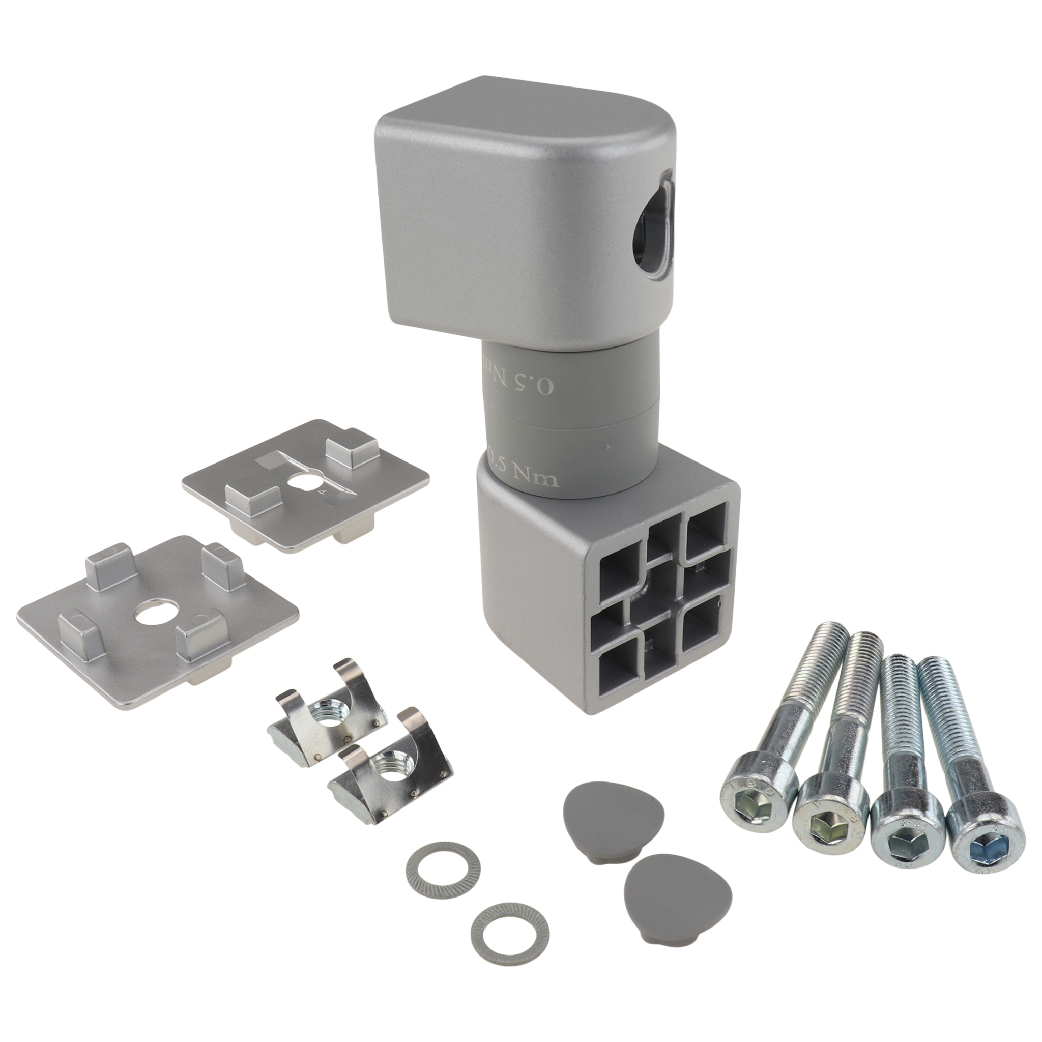 The friction joint impresses with its dimensions of 40x40x110, which offer a perfect balance between size and function. The die-cast aluminum not only guarantees durability but also a lightweight construction, facilitating handling. The aluminum-colored coating imparts a simple elegance to the joint, seamlessly integrating into any industrial environment. An award-winning design ensures that the friction joint is not only functional but also visually appealing.Advantages
