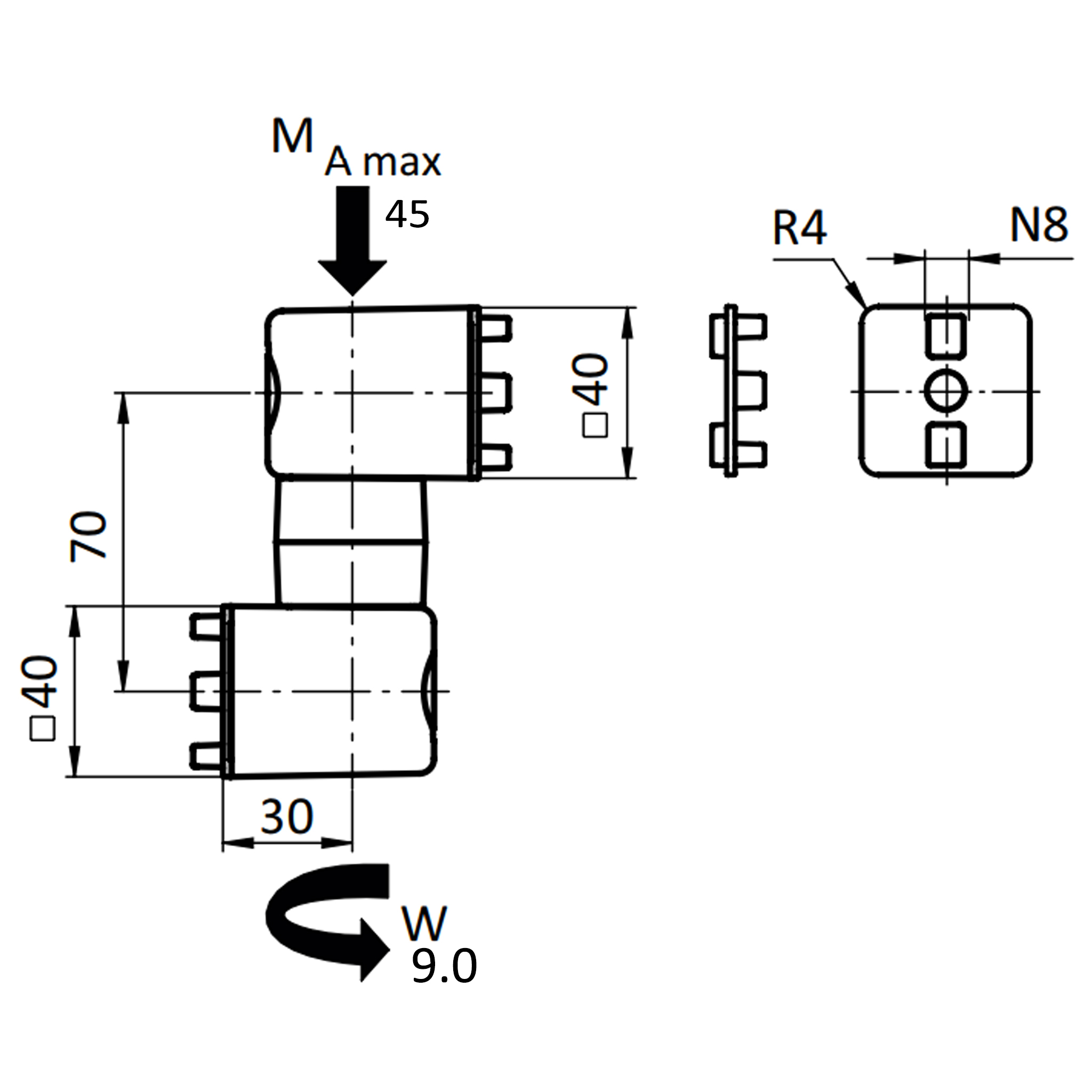 This friction joint is characterized by its dimensions of 40x60x110 millimeters. The precisely manufactured aluminum construction ensures a high load capacity, allowing it to function reliably even under extreme conditions. The use of die-cast aluminum is not only a decision for durability but also for lightness, which minimizes the overall weight of the system in which it is integrated. The painted surface further protects the material from corrosion and gives it an appealing, aluminum-colored aesthetic.Advantages of the Friction Joint
