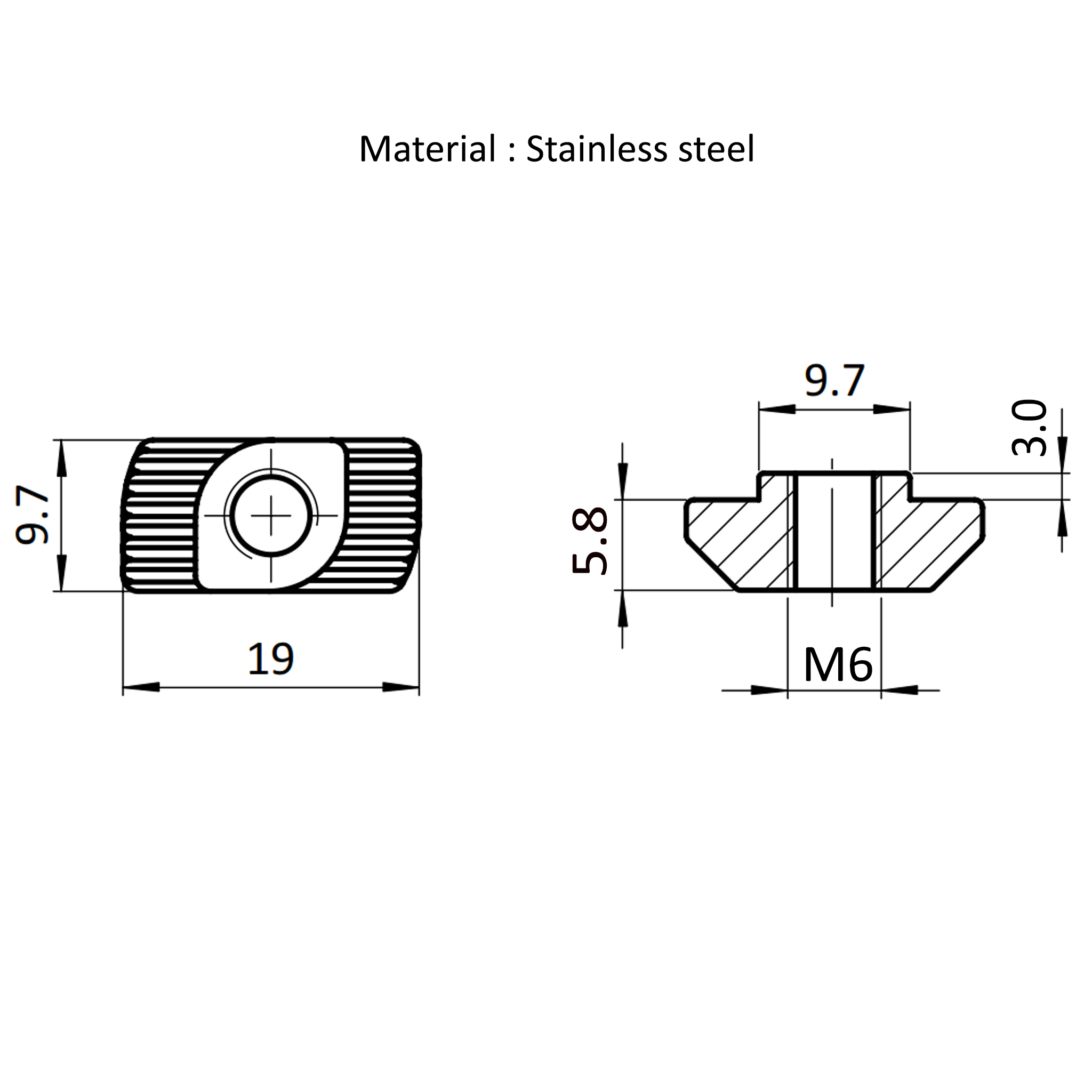The M6 Hammer Nut offers a multitude of advantages that set it apart from conventional fastening elements. The precise manufacturing ensures a reliable connection and minimizes wear on the connected components. Its installation is simple and efficient, as it can be inserted and fixed into the slot without complex tools. Another advantage is the flexibility of use in different profile types, significantly facilitating the planning and implementation of constructions. By using stainless steel, the hammer nut is not only robust but also easy to maintain, as it requires no additional coating.Quality