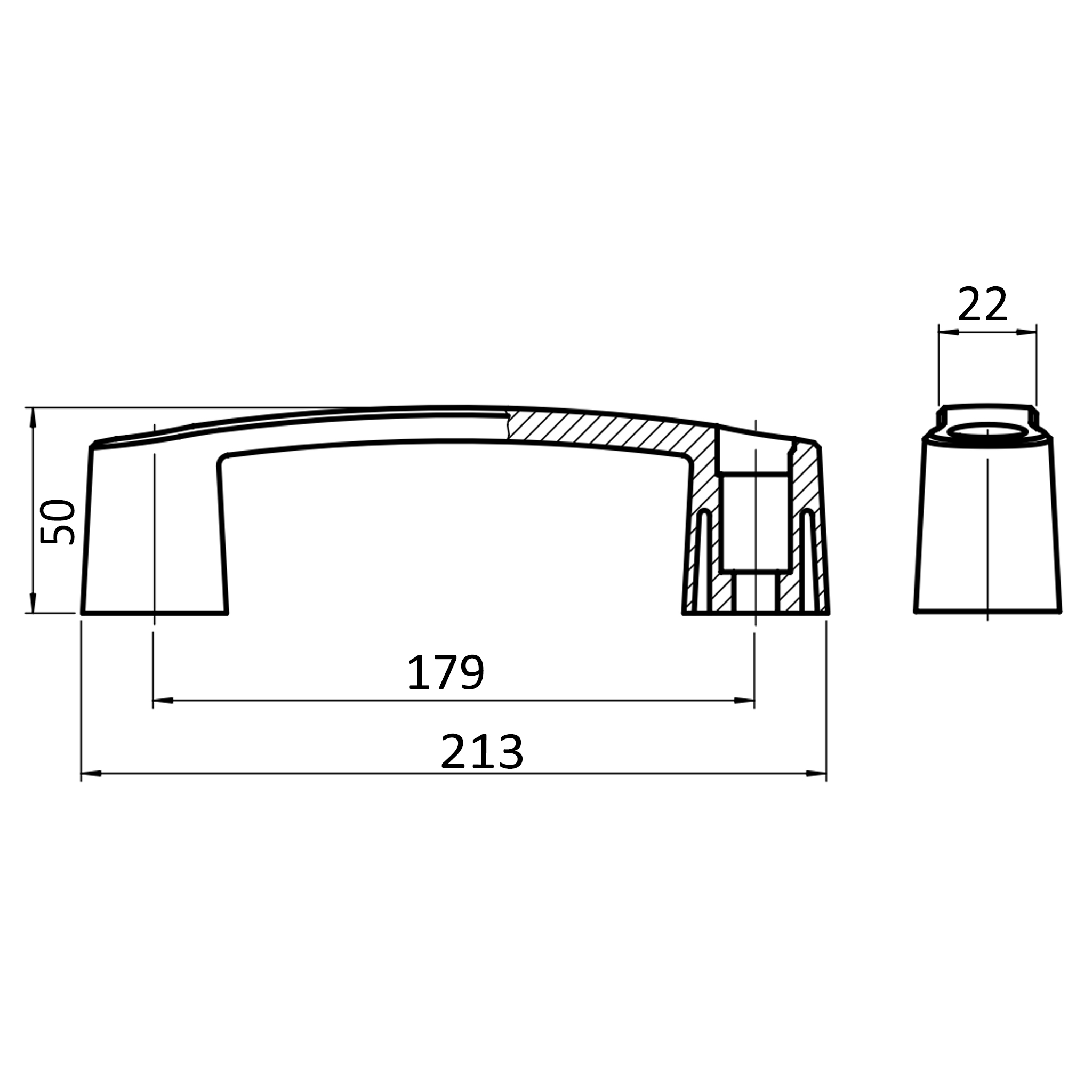 Handle, Bridge Handle With Cover Cap, 179, Plastic PA reinforced, black