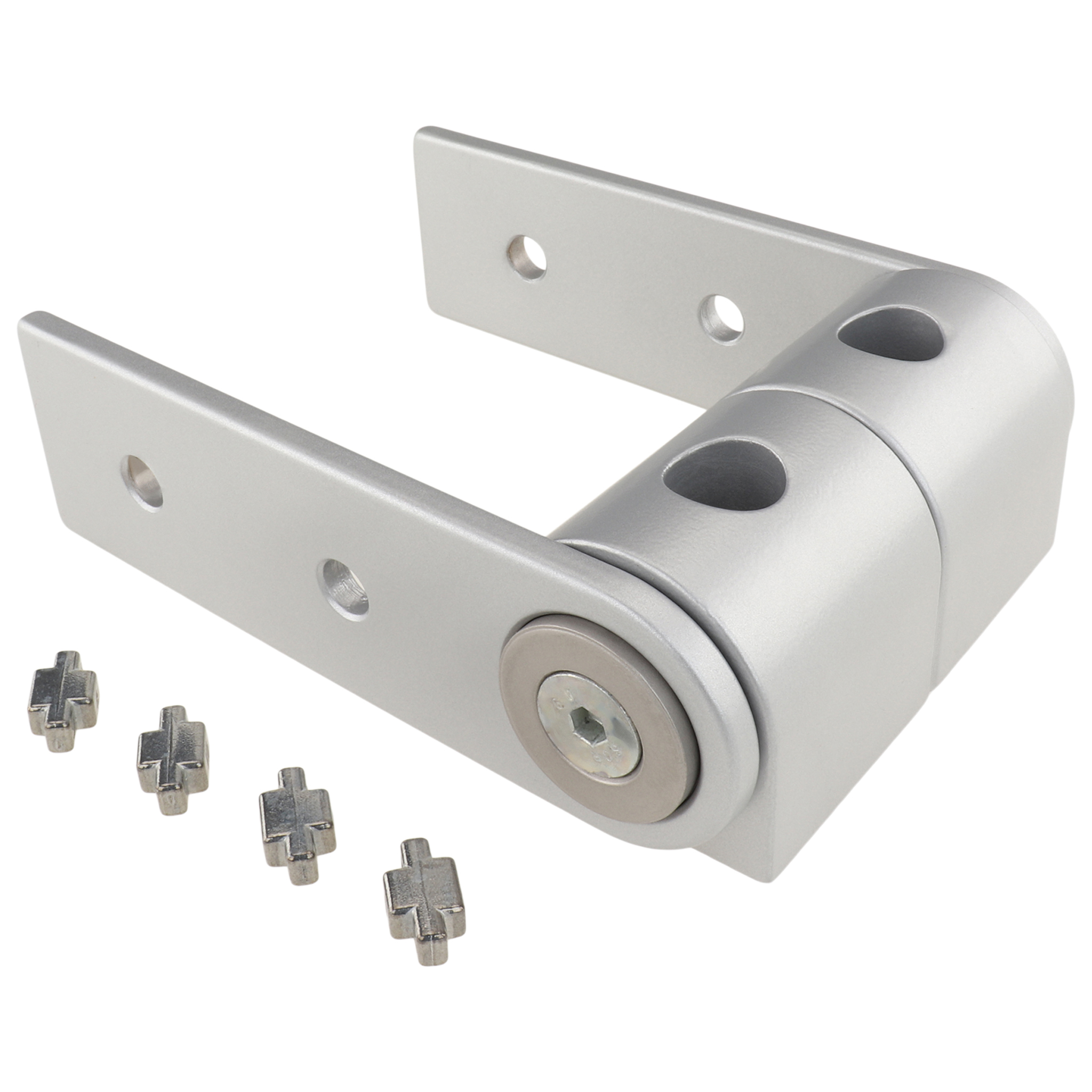 The joint is characterized by its precise manufacturing from aluminum die-casting, making it particularly robust and durable. With dimensions of 45x90x142 mm, it fits ideally into numerous construction systems. The powder-coated surface provides reliable protection against environmental influences and guarantees a long lifespan. The aluminum-colored coating gives the product a modern look that seamlessly integrates into various design concepts.Advantages