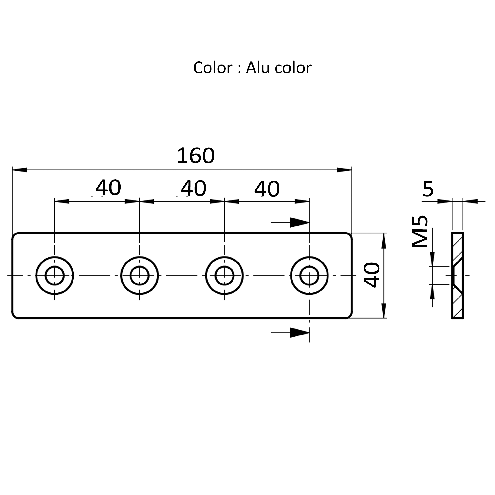 The plate is made of high-quality steel, which gives it exceptional robustness. With dimensions of 160x40x5, the plate offers an ideal size for versatile applications. The powder-coated surface in aluminum-colored finish not only provides an aesthetic appearance but also additional protection against corrosion and external influences. The powder-coating technique is known for its ability to create a durable and long-lasting surface.Construction Advantages