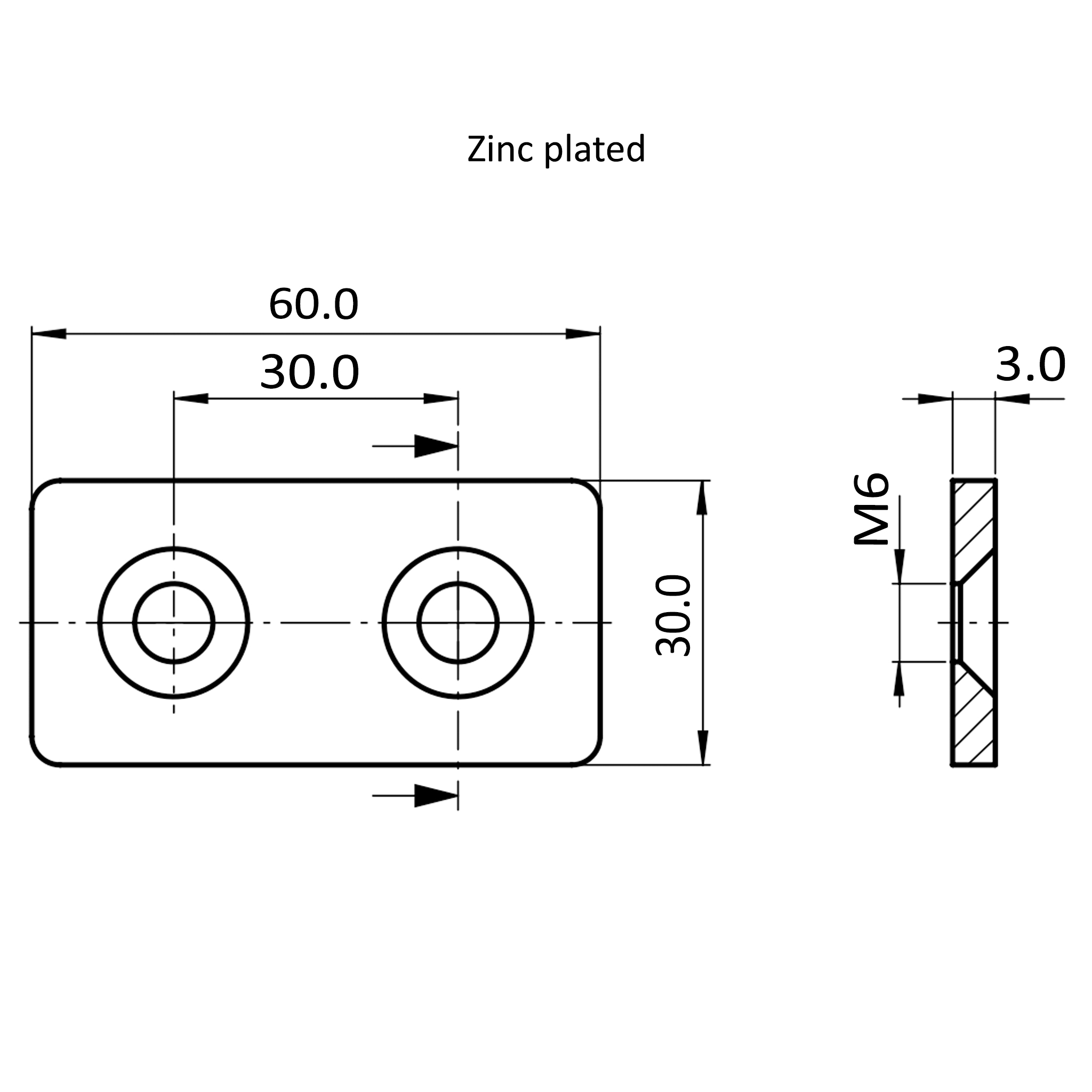 Plate, Connector Plate, 60x30x3, Steel, zink plated