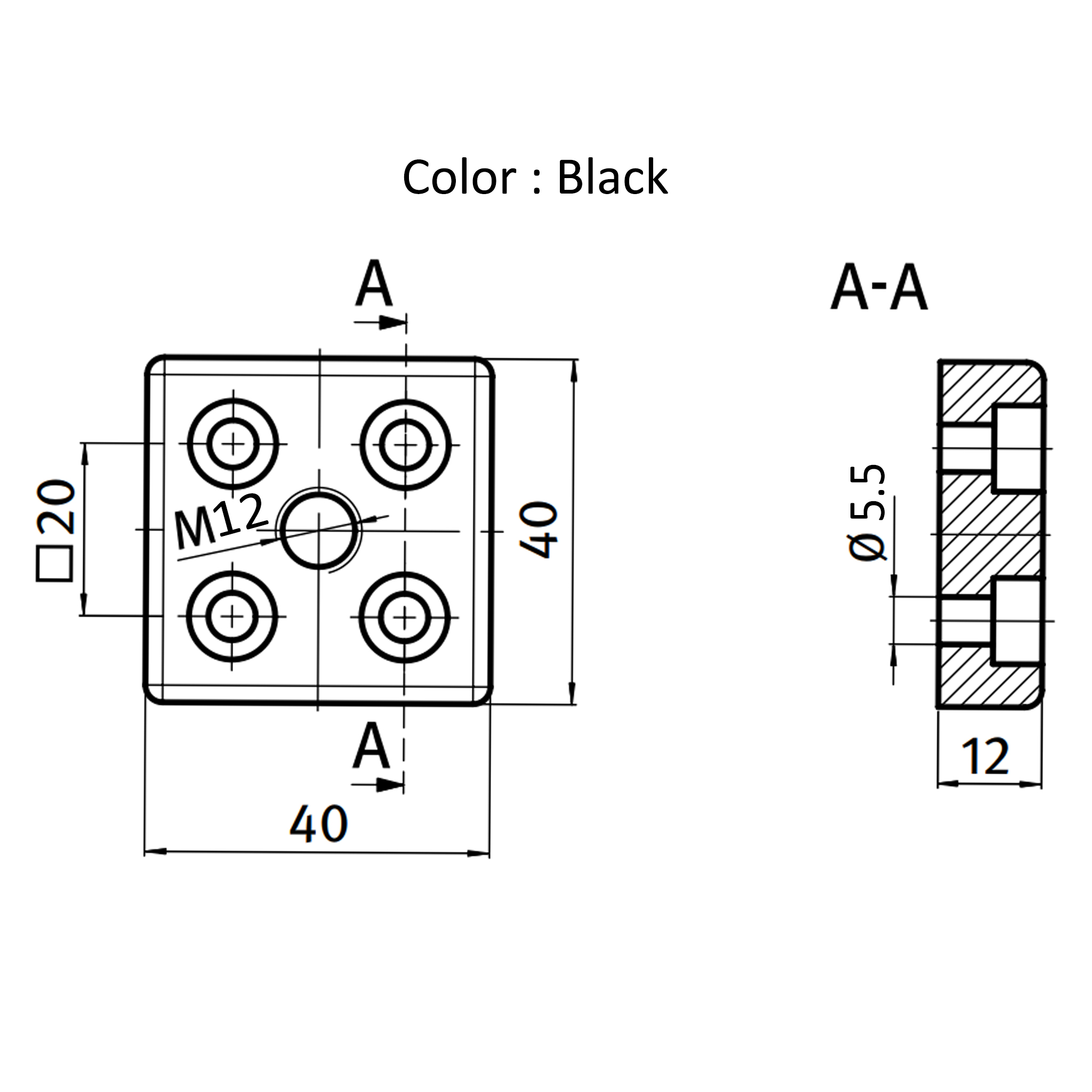 The core of this plate is the zinc die-cast, known for its excellent stability. With dimensions of 40x40x12, it offers a compact yet robust structure. The M12 thread size guarantees secure fastening, which is particularly advantageous in demanding environments. The powder-coated surface in black not only provides an elegant appearance but also ensures additional protection against corrosion and wear, significantly increasing the plate's lifespan.Advantages