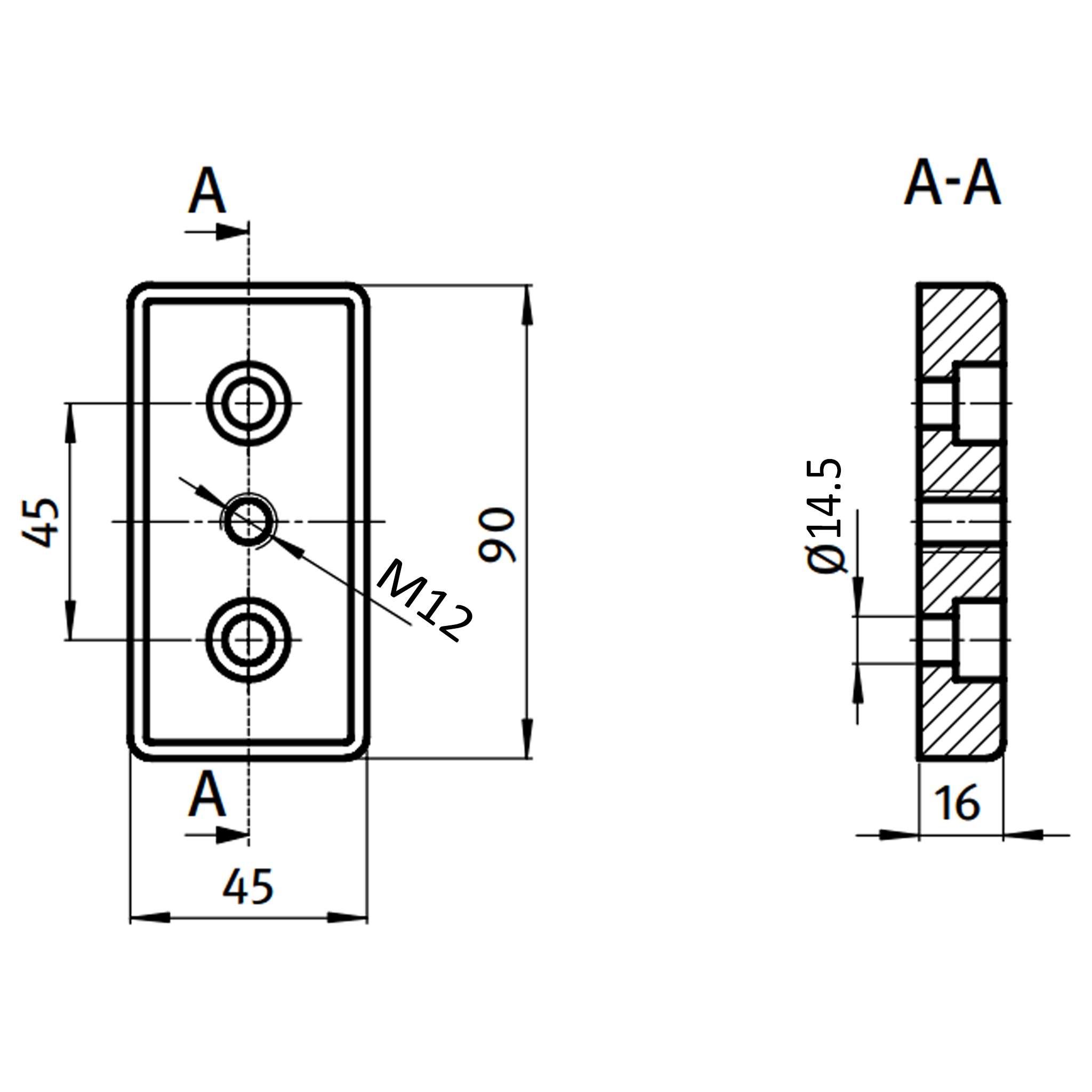 The Transport Plate and Base Plate M12 measures 45x90x16 millimeters and is made of high-quality zinc die-cast. This choice of material not only ensures an excellent weight-to-stability ratio but also impressive corrosion resistance. The plain surface gives the plate a modern and appealing appearance. Another outstanding feature is the M12 fastening, which ensures easy and comfortable installation. These specifications make the plate a versatile component for industrial use.Advantages