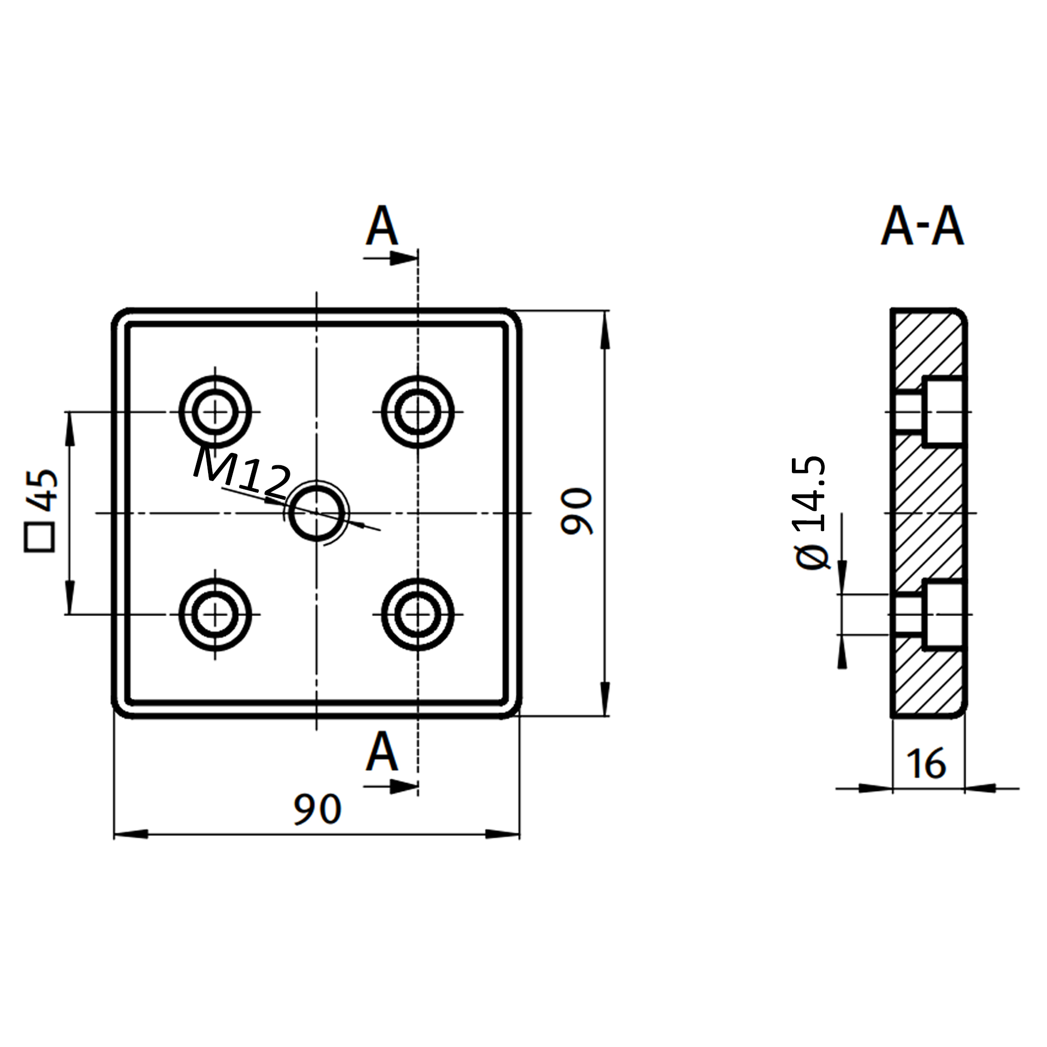 Plate, Transport and Base Plate M12, 90x90x16, Zinc die-cast, blanc