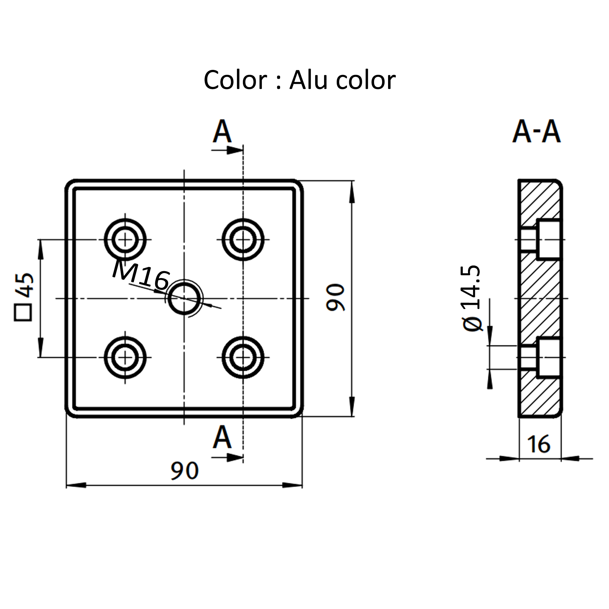Plate, Transport and Base Plate M16, 90x90x16, Zinc die-cast, powder-coated, aluminum colored