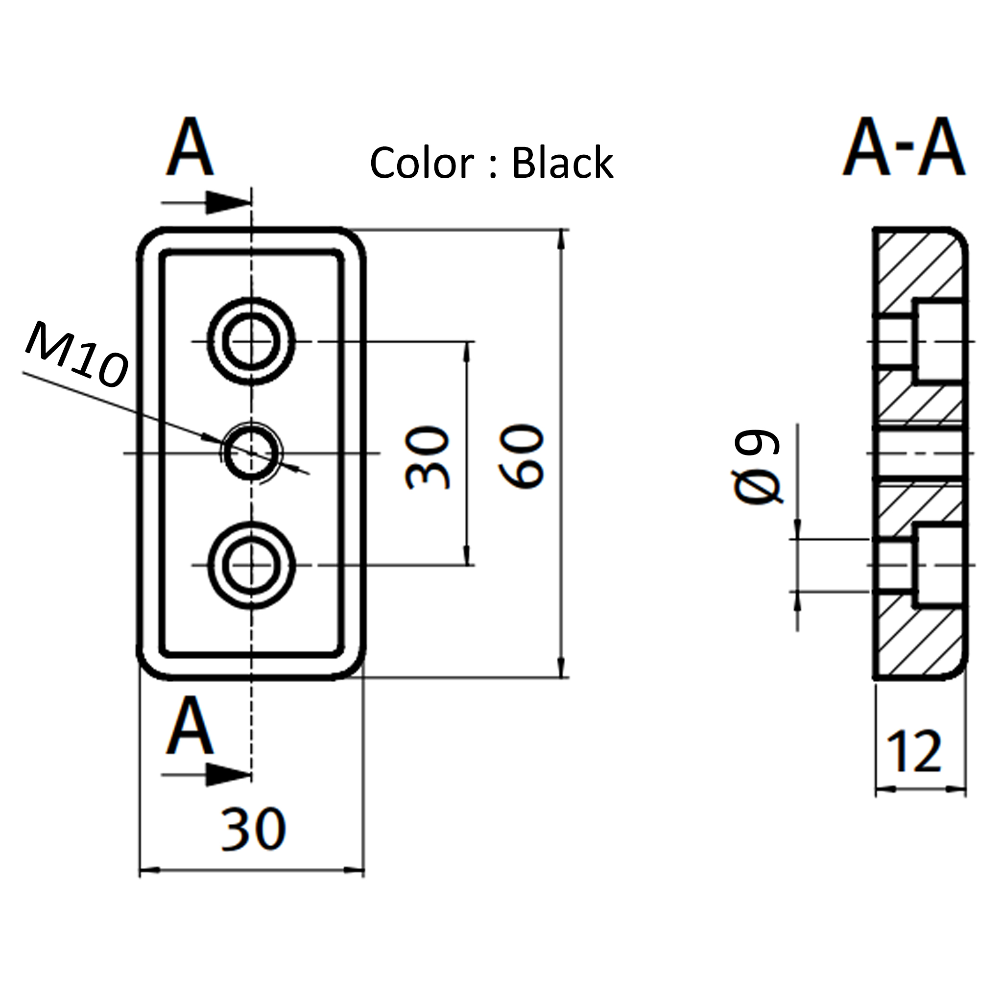 Plate, Transport and Base Plate M10, 30x60x12, Zinc Die-Cast, Powder-Coated, Black: A Masterpiece by 3d24