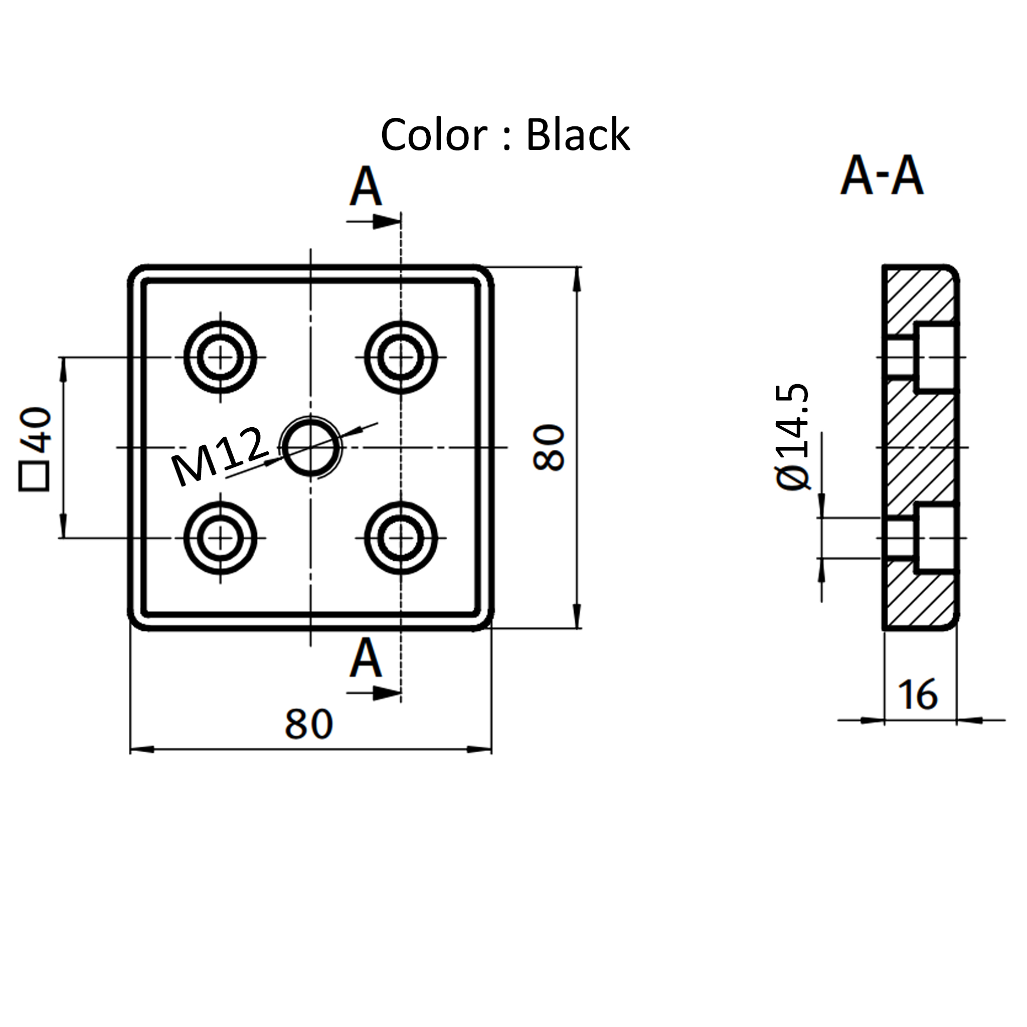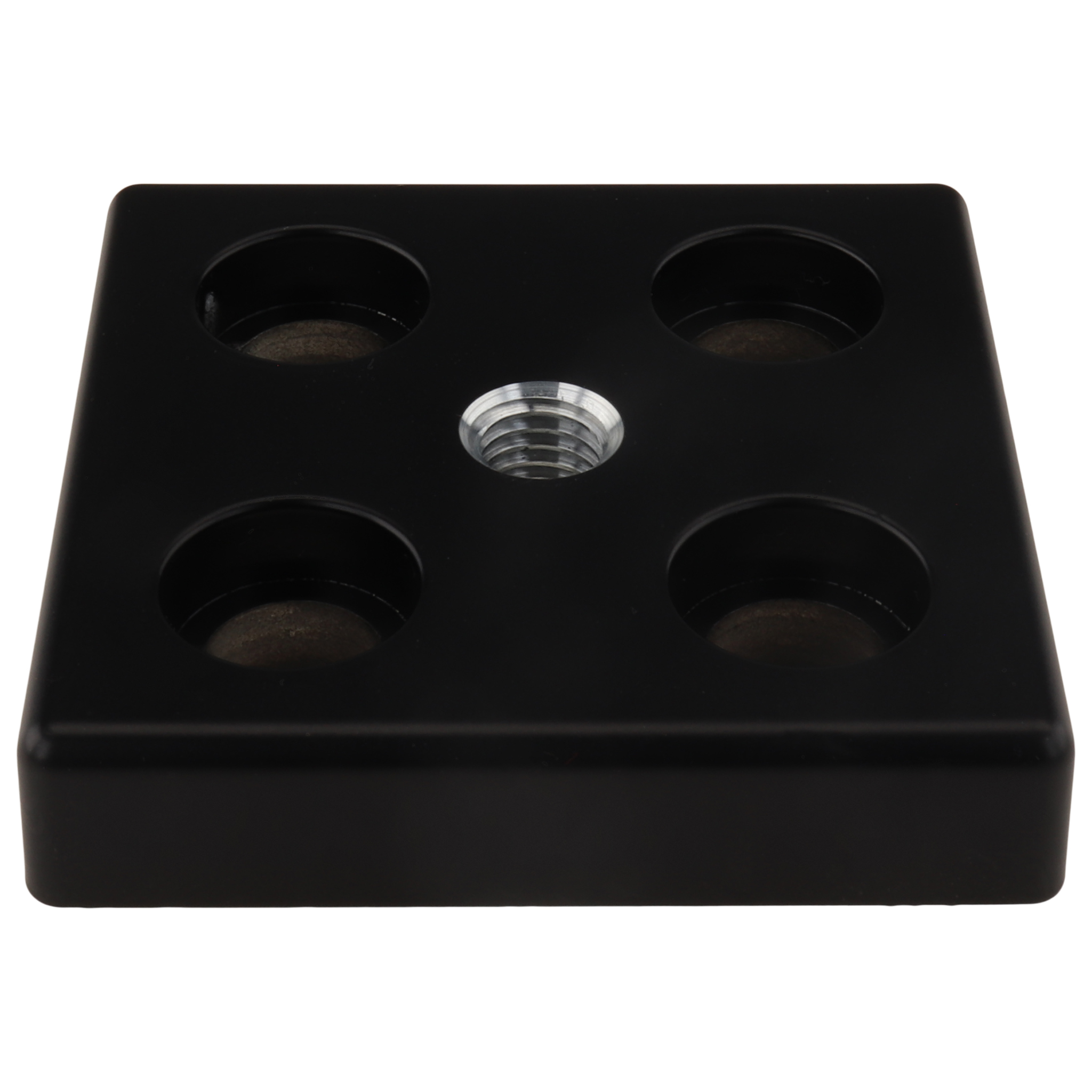 The plate is made of high-quality zinc die-cast, a material known for its stability and durability. Thanks to the black powder coating, the plate receives an elegant and resistant surface that also protects against corrosion. With dimensions of 80x80x16 mm, it is compact yet extremely resilient. The M12 threaded hole allows for easy and secure attachment in various applications.Advantages of the Plate